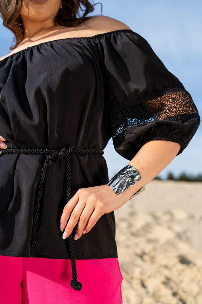 Состав: Вискоза-100%; Блузка с рукавами покроя "реглан", горловина блузка с эластичной резинкой, что позволяет носить блузку на плечах и с открытими плечами. Рукава реглан, свободные 3/4, по ни... Показать описаниезу с эластичной резинкой.блузка со съёмным поясом из красивого шнура.