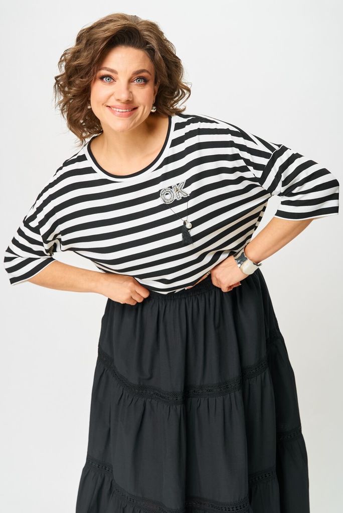 Состав: Вискоза-96%; Спандекс-4%; Стильная женская блузка со спущенными плечами - ваш комфорт и элегантность в каждой детали. Повседневная модель выполнена из качественного трикотажа, сочетающего в се... Показать описаниебе мягкость и эластичность. Свободный оверсайз крой и стильный дизайн хорошо садится на любую фигуру, а декоративное украшение добавляет образу оригинальности. Классика – белая блузка с контрастными полосками в стиле "тельняшка" – является основой для кэжуал-образов, офисных комплектов и вечерних выходов в свет. Таблица измерений изделия в готовом виде М 3012 Наименование измерений/размер 52 54 56 58 60 62 Ширина по линии груди 55 57 59 61 63 65 Ширина по линии бёдер 57 59 61 63 65 67 Длина изделия по спинке 59 59 59 59 59 59 Длина рукава от горловины 45 45 45 45 45 45 Допустимые отклонения +-1-1,5 см
