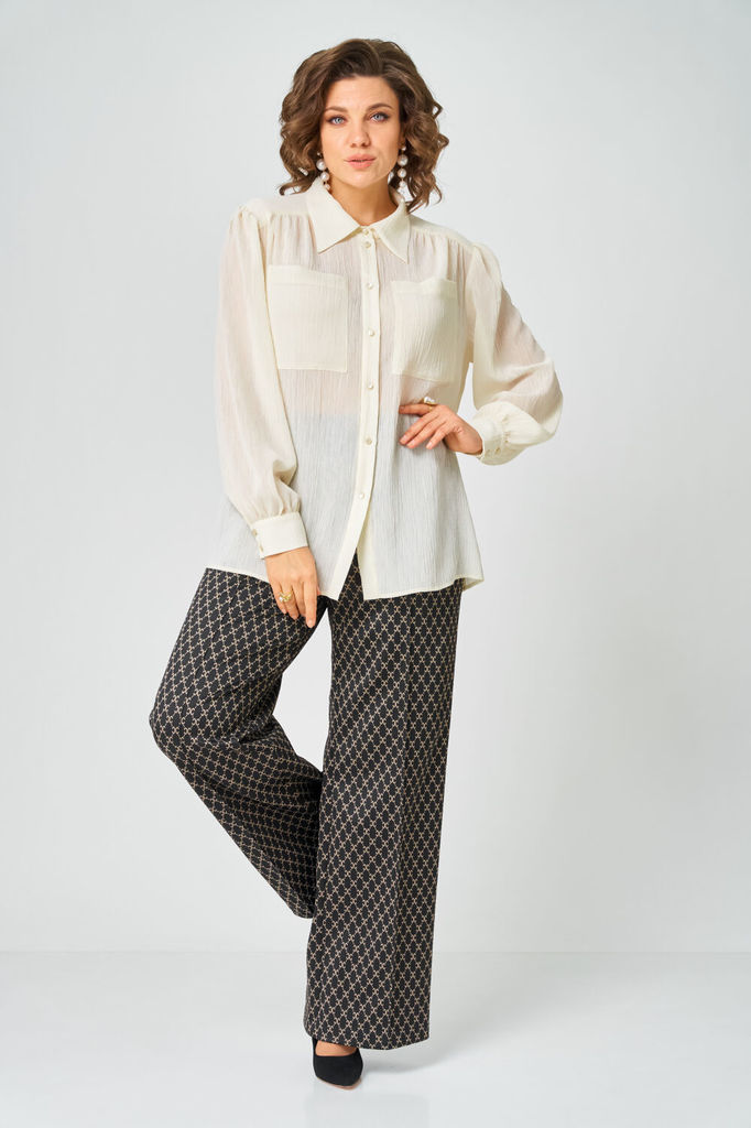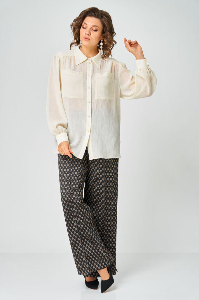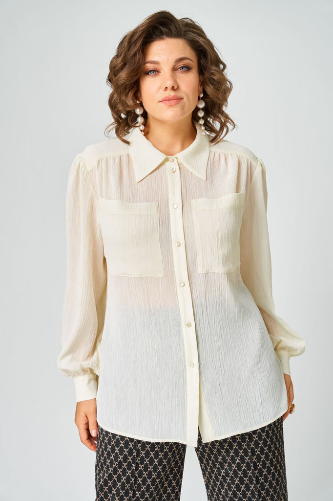 Состав: ПЭ-100%; Блузка из шифона с эффектом крэш и объемными рукавами на манжетах прекрасно впишется в любой гардероб. Изделие с планкой на пуговицах прекрасно сидит на фигуре, прямой крой вещи вытяг... Показать описаниеивает силуэт, скрывает несовершенства и подчёркивает достоинства. Модель подойдет для носки в теплую погоду, зимой под жакет, жилет, кардиган, прекрасно сочетается не только с классическими брюками и юбками. Таблица измерений изделия в готовом виде М 5043 Наименование измерений/размер 50 52 54 56 58 60 Ширина по линии груди 57 59 61 63 65 67 Ширина по линии бёдер 60 62 64 66 68 70 Длина изделия по спинке 68 68 68 68 68 68 Длина рукава 60 60 60 60 60 60 Допустимые отклонения +-1-1,5 см