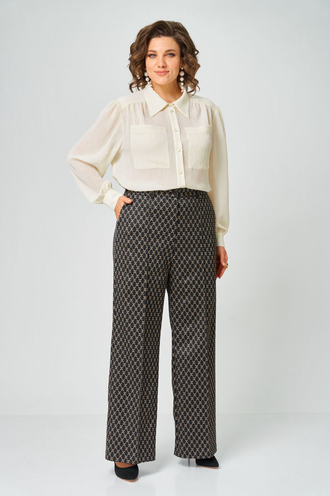 Состав: ПЭ-100%; Блузка в горох с объемными рукавами на манжетах прекрасно впишется в любой гардероб. Изделие с планкой на пуговицах прекрасно сидит на фигуре, прямой крой вещи вытягивает силуэт, скры... Показать описаниевает несовершенства и подчёркивает достоинства. Модель из крепа подойдет для носки в теплую погоду, зимой под жакет, жилет, кардиган, прекрасно сочетается не только с классическими брюками и юбками. Дизайнерская брошь ручной работы дополняет и украшает блузку. Таблица измерений изделия в готовом виде М 5028 Наименование измерений/размер 50 52 54 56 58 60 Ширина по линии груди 56 58 60 62 64 66 Ширина по линии низа 58 60 62 64 66 68 Длина изделия по спинке 68 68 68 68 68 68 Длина рукава 60 60 60 60 60 60 Допустимые отклонения +-1-1,5 см