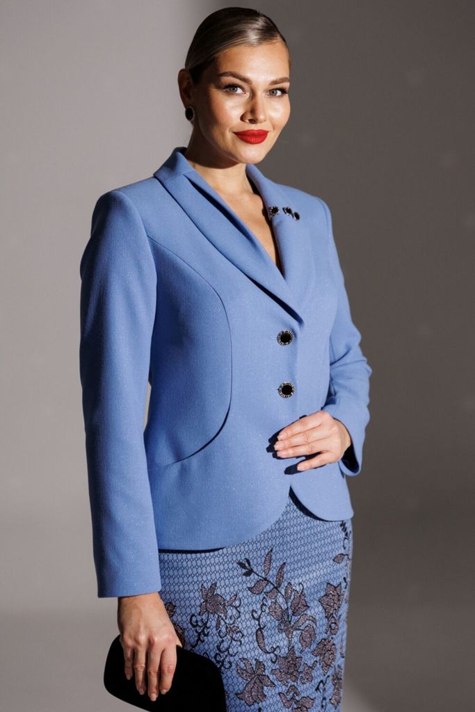 Состав: Вискоза-33%; ПЭ-62%; Спандекс-3%; Люрекс-2%; Элегантность с характером. Именно так можно описать одну из новинок от брэнда "МОДА-ЮРС". Она идеально впишется в модный гардероб и подчеркнет вашу... Показать описание естественную красоту. Жакет полуприлегающего силуэта с фигурными рельефами, переходящими в карман. В жакете фантазийный воротник с декоративными элементами. Застежка центральная на петли-пуговицы. Рукав втачной, двухшовный. Спинка со средним швом и вытачками. Юбка прямая, зауженная к низу, сверху на притачном поясе. Застежка на тесьму-молнию в среднем шве, который переходит в шлицу. Костюм на подкладке. Замеры 46-52: Жакет Длина спинки 54 54 54 54 Ширина спинки 38 39 40 41 Ширина на уровне глубины проймы 51 53 55 57 Ширина по линии талии 47 49 51 53 Длина рукава 47 47 47 47 Ширина по линии бедер 52 54 56 58 Ширина рукава вверху 18 19 20 21 Ширина плеча 12 13 13 13 Юбка Длина по боковому шву 73 73 73 73 Ширина по линии талии 39 41 43 45 Ширина по линии бедер 51 53 55 57