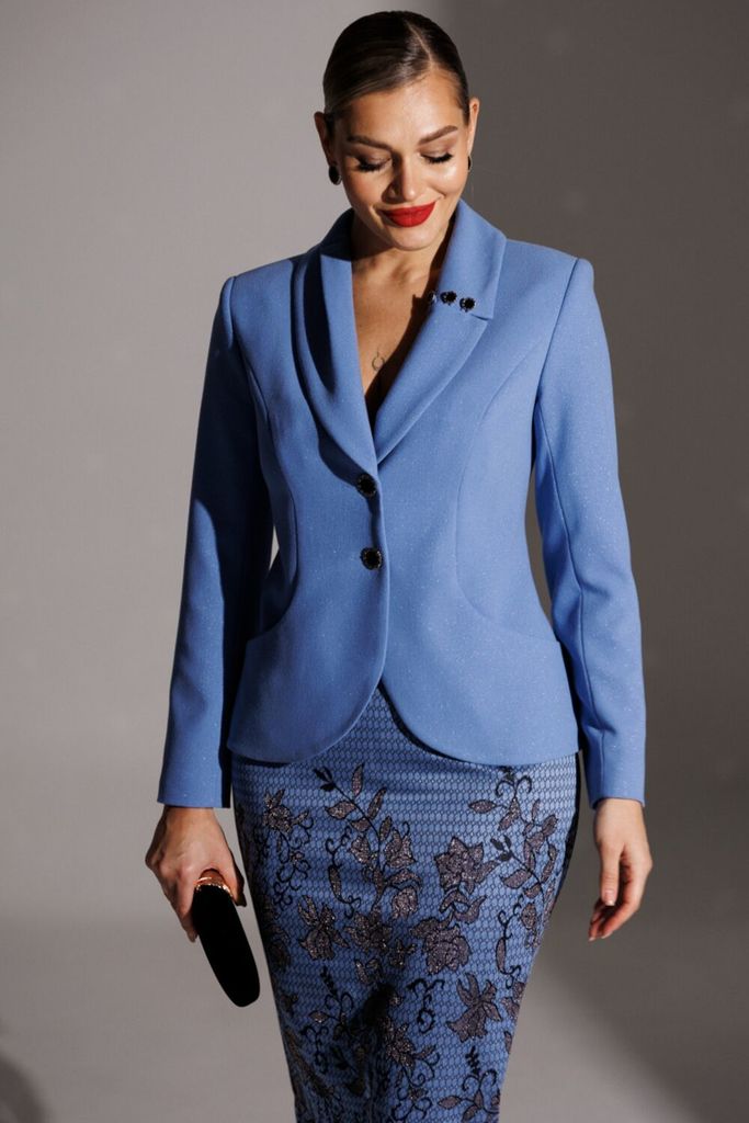 Состав: Вискоза-33%; ПЭ-65%; Спандекс-2%; Женственность в каждом шве! Мы предлагаем Вам новинку от бренда "МОДА-ЮРС", которая выделит Ваши лучшие стороны: акцент на талию, плавные линии, идеальная пос... Показать описаниеадка. Забудьте о массивных плечах и прямых линиях - теперь это нежные линии, которые подчеркивают Вашу фигуру и добавляют образу утонченности. Жакет полуприлегающего силуэта с рельефами по переду и спинке. Рукава втачные, двухшовные. Спинка со средним швом. Жакет декорирован отрезными деталями по линии талии и горловине, которые выполнены из ткани в пайетки. Главным акцентом является отрезной лацкан с одной стороны и брошь, декорированная жемчужинами, с другой стороны. Застежка на металлические пришивные кнопки. Юбка прямая, зауженная к низу, сверху на притачном поясе, по бокам с резинками. Застежка на тесьму-молнию в среднем шве. Комплект на подкладке. Замеры 46-54: Жакет Длина спинки 64,5 64,5 64,5 64,5 64,5 Ширина спинки 19,5 20 20,5 21 21,5 Ширина на уровне глубины проймы 50 52 54 56 58 Ширина по линии талии 43 45 47 49 51 Длина рукава 61 61 61 61 61 Ширина по линии бедер 54 56 58 60 62 Ширина рукава вверху 17,5 18 18,5 19 19,5 Ширина плеча 12,6 12,8 13 13,2 13,4 Юбка Длина по боковому шву 69,5 69,5 69,5 69,5 69,5 Ширина по линии талии 40 42 44 46 48 Ширина по линии бедер 51 53 55 57 59