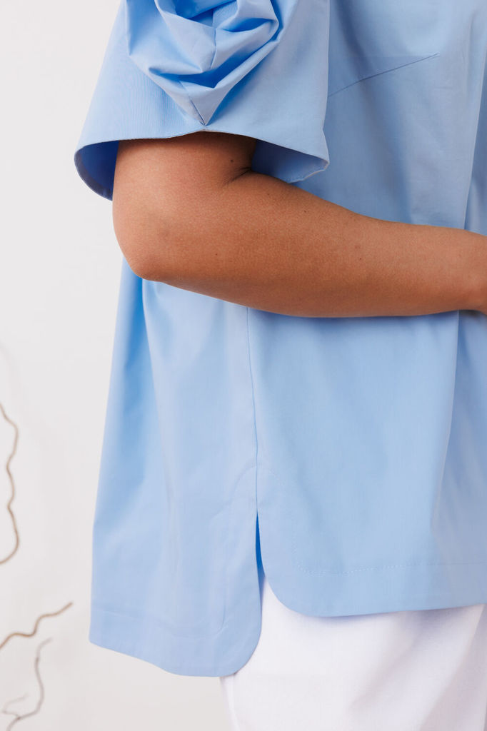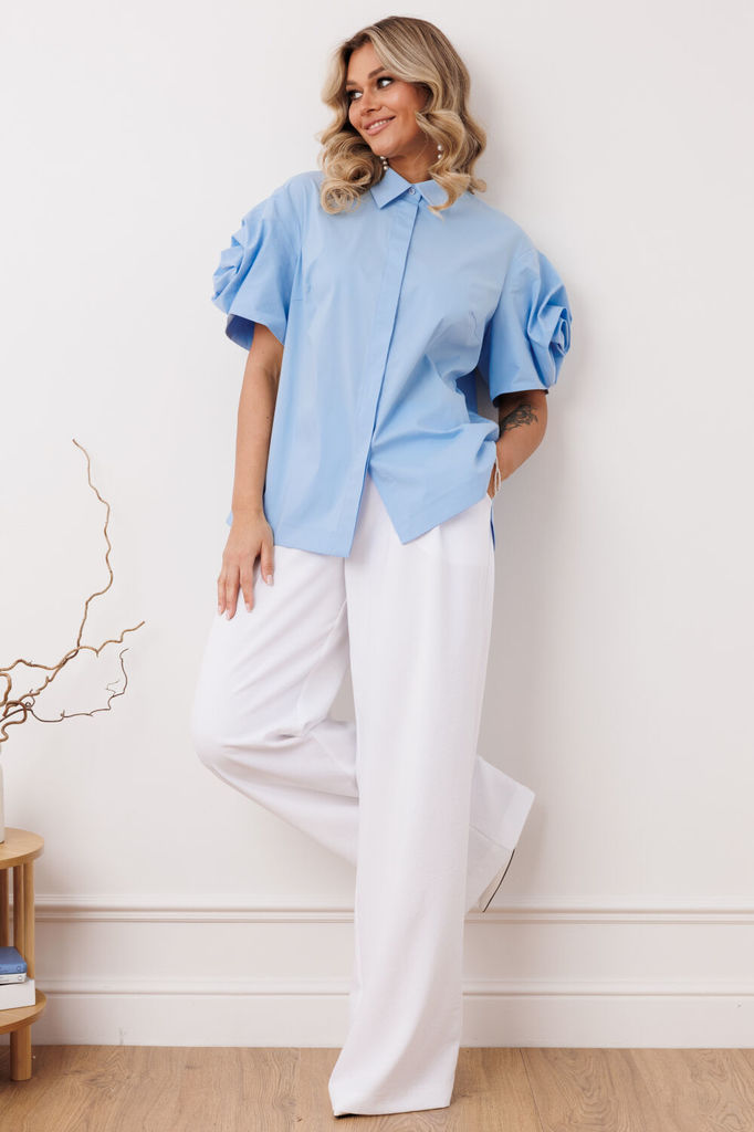 Состав: ПЭ-27%; Хлопок-71%; Эластан-2%; В модный базовый гардероб рубашка должна входить по умолчанию. Рубашка с коротким рукавом не менее универсальная, чем стандартная. Классический прямой силуэт ле... Показать описаниегко комбинируется с любым низом. Акцентом в данной модели является объемный цветок на рукавах. По переду - центральная потайная застежка на петли-пуговицы. По спинке кокетка и вертикальные, глубокие складки. Низ фигурный с перепадом длины. Линия плеча спущена. Замеры 46-52: Длина спинки 74 74 74 74 Ширина спинки 42 43 44 45 Ширина на уровне глубины проймы 60 62 64 66 Ширина по линии талии 60 62 64 66 Ширина по линии бедер 62 64 66 68 Длина рукава 25 25 25 25 Ширина рукава вверху 21 22 23 24 Ширина плеча 18 19 19 19
