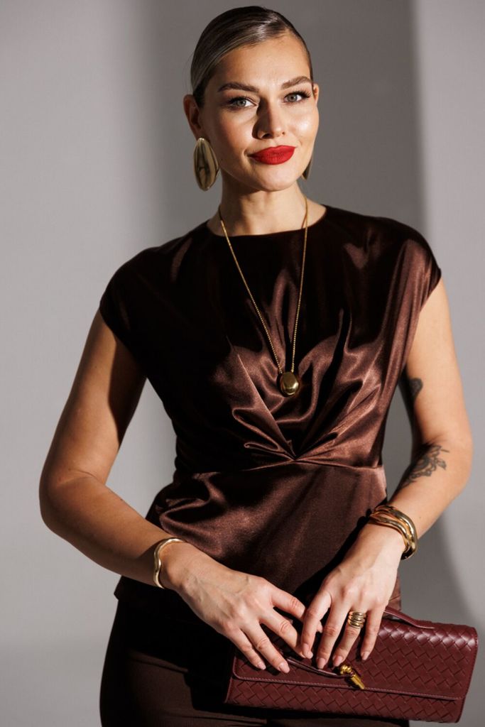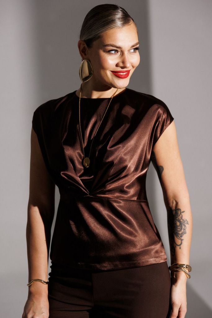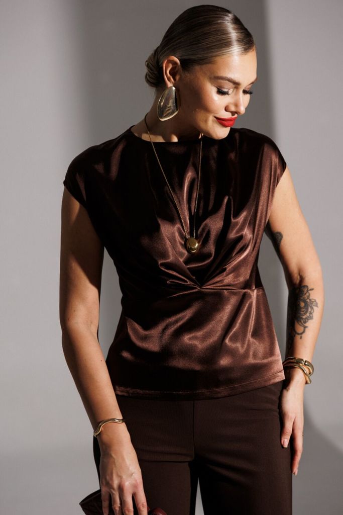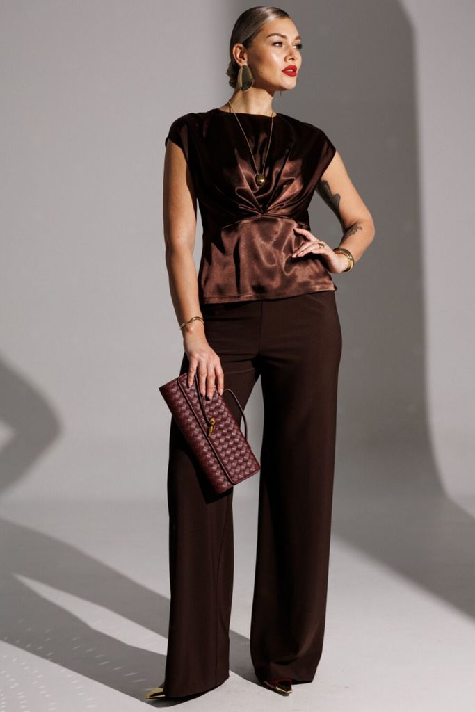 Состав: Топ: ПЭ-97%; Эластан-3%; Брюки: ПЭ-73%; Эластан-5%; ПА-22%; Стильный дуэт в трендовом цвете! Блуза выполнена из атласной ткани свободного кроя с немного спущенным плечевым швом,что добавляет р... Показать описаниеасслабленности и воздушности в образ. На передней части имеется подрез фигурной формы, который проходит по линии талии. Это создает изысканный силуэт и визуально подчеркивает талию. В верхней части переда заложены вертикальные складки, придающие дополнительную текстуру и визуально удлиняющие фигуру.Вырез горловины округлой формы. Спинка с аккуратным средним швом, в котором скрыта молния. Эта блуза идеально подходит для создания элегантного и непринужденного образа, легко комбинируется с различными видами низа и аксессуарами. Брюки с высокой посадкой из трикотажного полотна с притачным поясом на резинке без боковых швов,слегка расширенные к низу.Эти брюки идеально дополняют блузку и подходят для создания стильного,но удобного образа. Замеры 44-50: Топ Длина спинки 60 60 60 60 Ширина спинки 45 46 47 48 Ширина на уровне глубины проймы 47 49 51 53 Ширина по линии талии 41 43 45 47 Ширина по линии бедер 49,5 51,5 53,5 55,5 Ширина плеча 17,5 18 18 18 Брюки Длина по боковому шву 112 112 112 112 Ширина по линии талии 39 41 43 45 Ширина по линии бедер 46 48 50 52