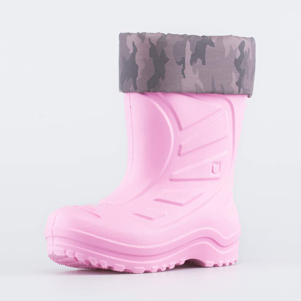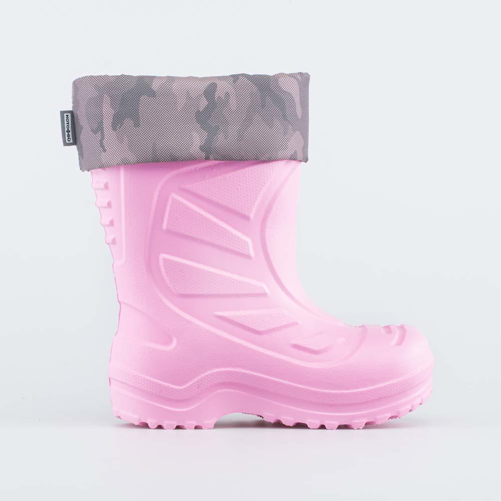 Описание Описание модели Утепленные сапоги из мягкого, гибкого и амортизирующего материала ЭВА выполнены в трендовом розовом цвете. Имеют двухслойный вкладной чулок и учитывают особенности детской сто... Показать описаниепы. Вкладной чулок с пришитой войлочной стелькой состоит из нескольких слоев: 1 - внутренний из хлопкового флиса впитывает избыток влаги; 2 - утеплитель из полиэстера отвечает за теплоизоляцию. Укреплен внешним карманом из искусственной кожи, чтобы обеспечить дополнительную поддержку стопы. Чулок можно вынуть и просушить на батарее, а также при необходимости постирать в стиральной машине. Светоотражающий отворот из плотного нейлона повышает безопасность ребенка в темное время суток. Обувь предназначена для детей школьного возраста, поэтому особое внимание уделено правильной конструкции: более плотный материал в районе пятки для придания необходимой жесткости и анатомическая форма следа. Сделано в России.