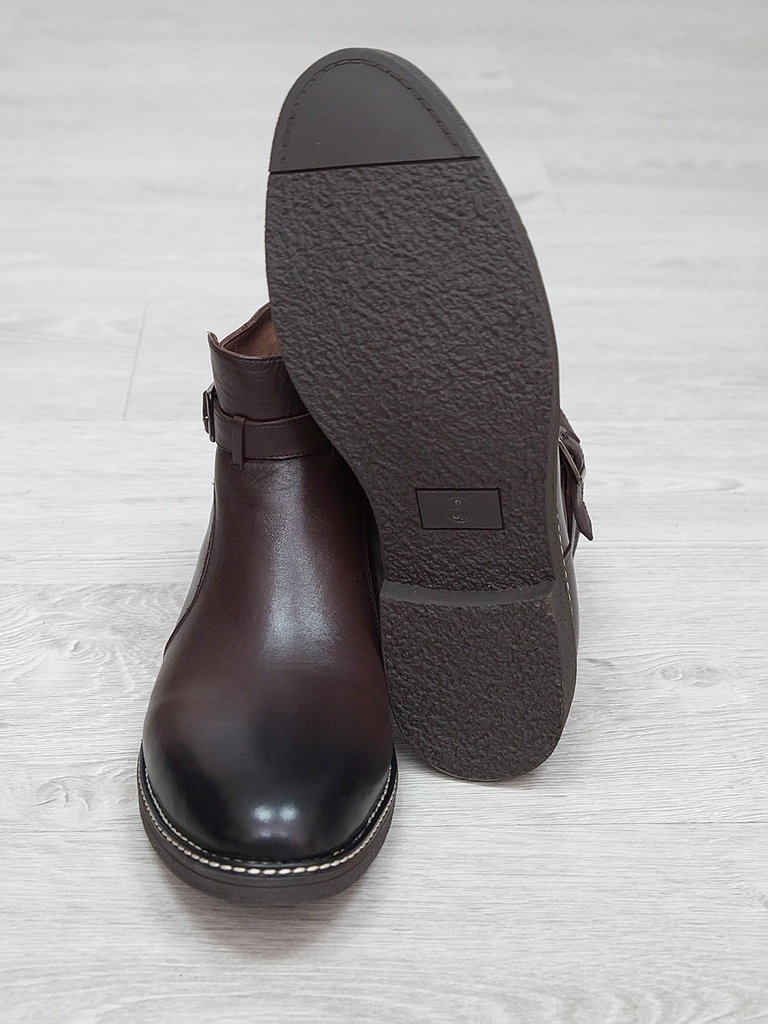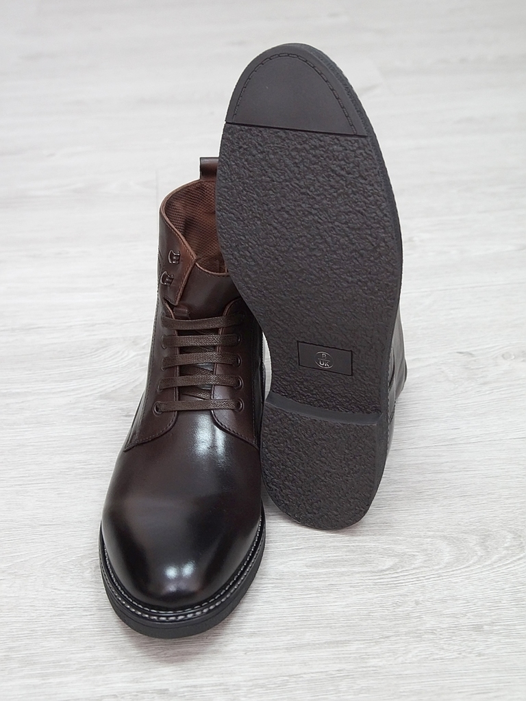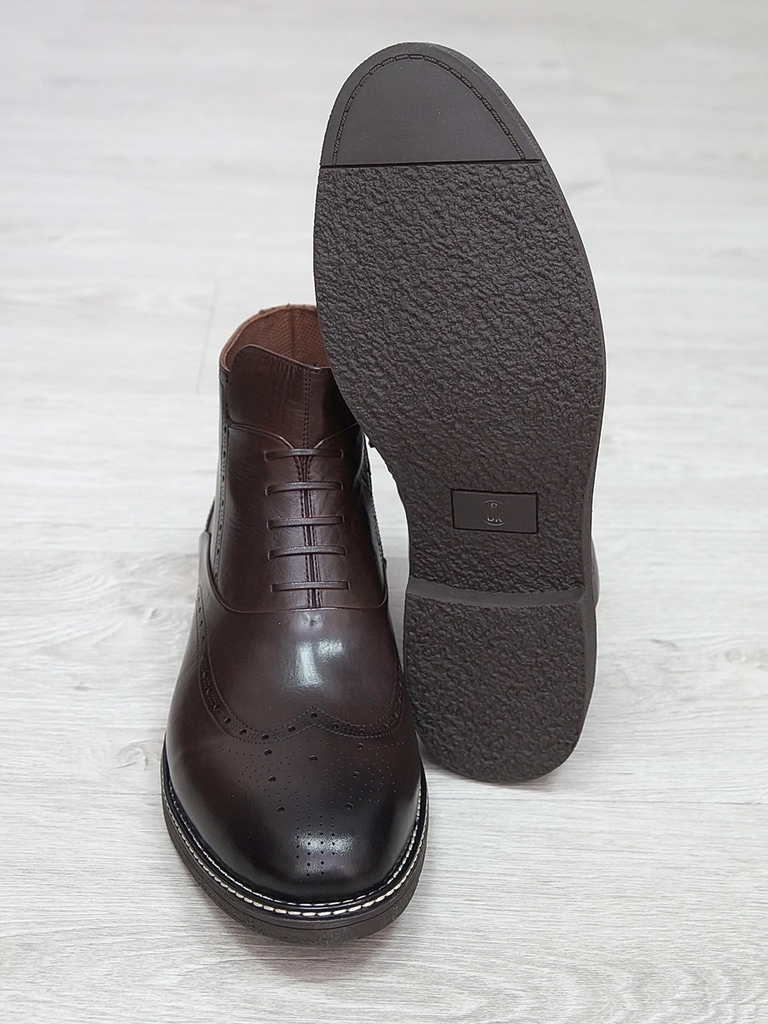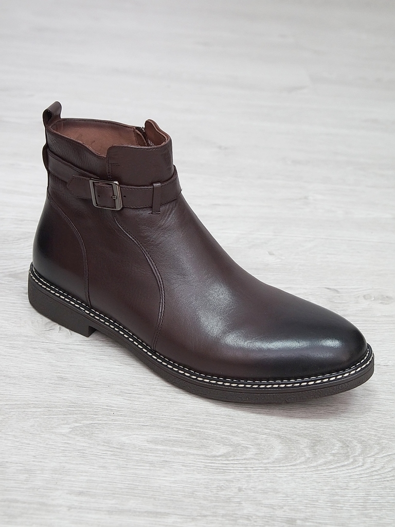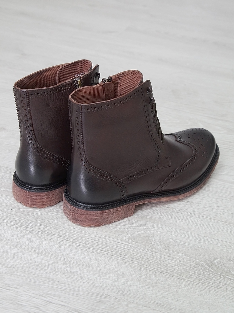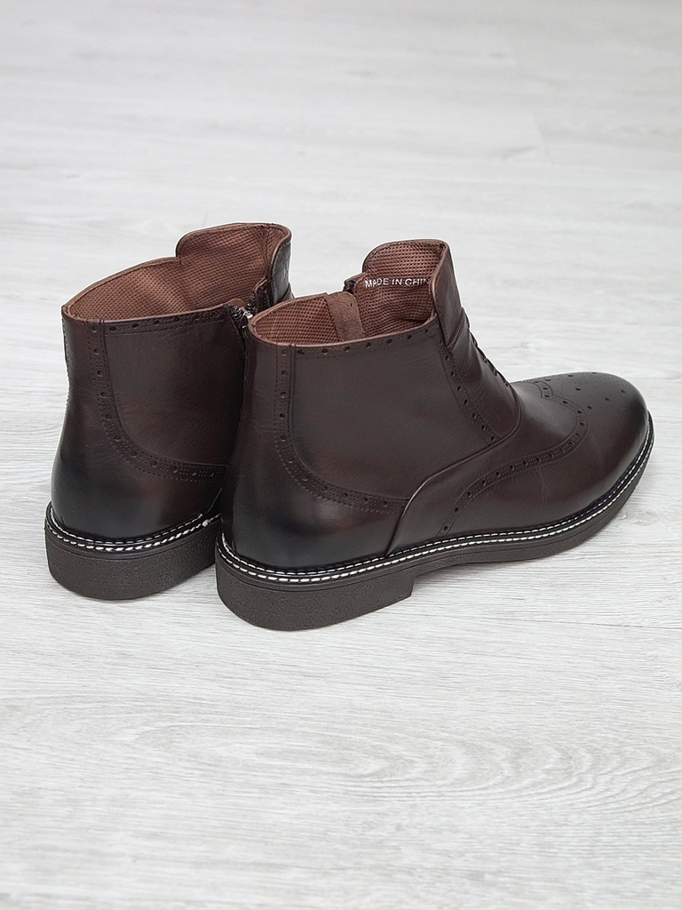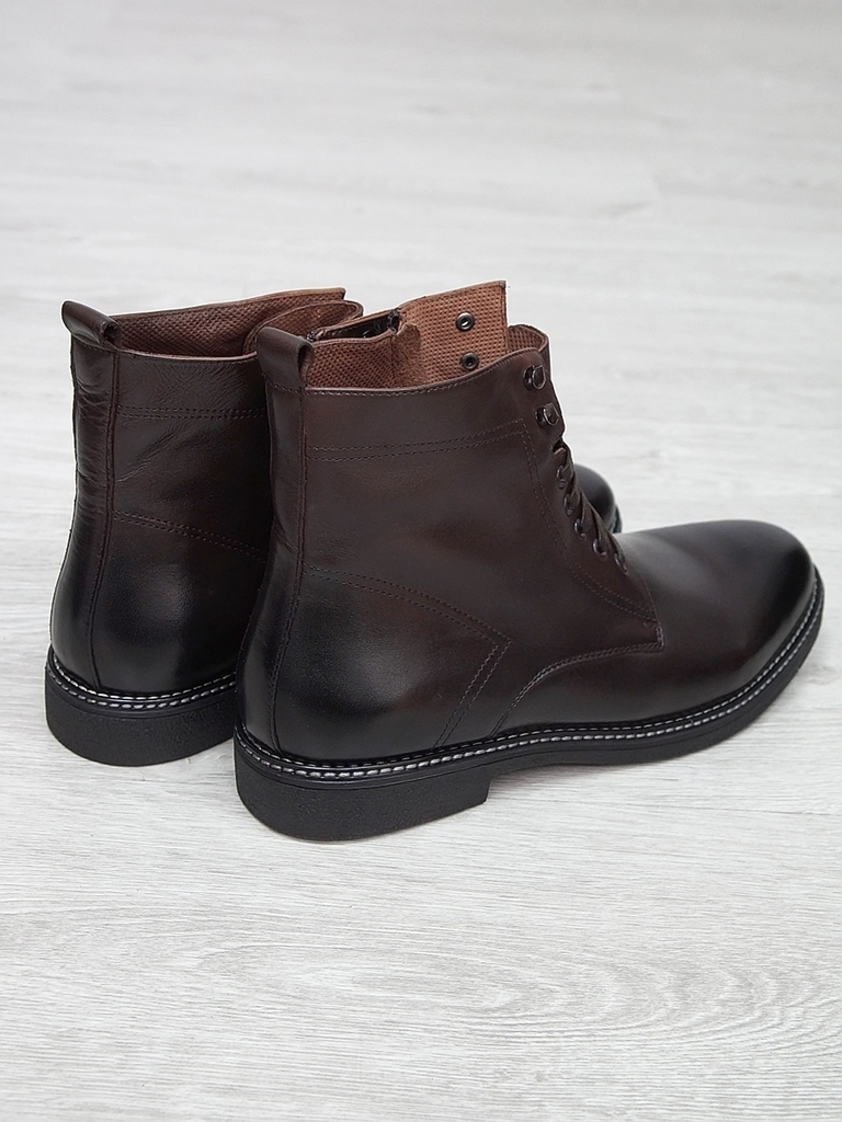 Артикул: 0214 -H9053-B1-SW5. Сезон: Демисезон. Материал верха: Натуральная кожа. Материал подкладки: Натуральная кожа. Размерность: Большемерят. Цвет: Коричневый. Производство: Китай. Эти демисезонные... Показать описание кожаные ботинки представляют собой стильную и практичную обувь, идеально подходящую для прохладной погоды и переменчивых условий межсезонья. Верх выполнен из высококачественной натуральной кожи насыщенного темно-коричневого цвета, которая отличается прочностью, износостойкостью и элегантным внешним видом. Модель обладает классической формой с аккуратным и продуманным дизайном, что делает её универсальным вариантом для разнообразных образов — от деловых до повседневных. Особенностью ботинок является прочная шнуровка с металлическими крючками и глазками, позволяющая идеально зафиксировать стопу и регулировать посадку по индивидуальным предпочтениям. Внутри расположена мягкая подкладка из натуральных материалов, которая обеспечивает комфорт при носке, способствует хорошей вентиляции и поддерживает здоровье ног в течение всего дня. Подошва выполнена из прочной резины с рельефным протектором, что обеспечивает отличное сцепление с различными поверхностями, устойчивость и безопасность при движении даже в влажную погоду. Высокий устойчивый каблук и амортизирующая подошва создают комфортную посадку и снижают нагрузку на суставы при ходьбе, позволяя дольше оставаться активным и комфортным. Эти кожаные демисезонные ботинки идеально сочетаются с классическими костюмами, джинсами и casual-образами, делая их универсальным элементом гардероба. Они не только защищают ноги в переменчивую погоду, но и подчеркивают ваш стиль и чувство вкуса, становясь надежным спутником в любой ситуации. Подробное описание: https://obuv-tut2000.ru/magazin/product/botinki-muzhskie-demisezonnye-153