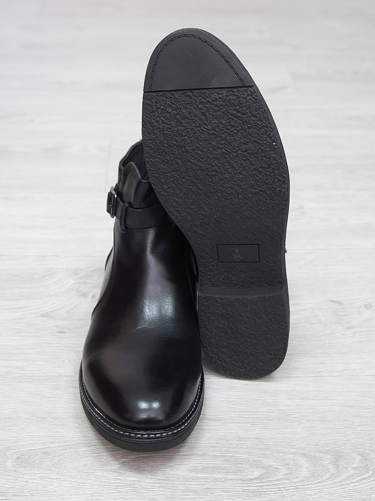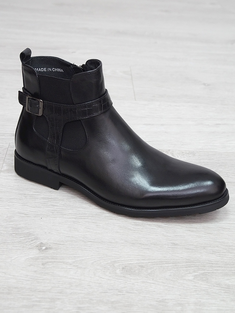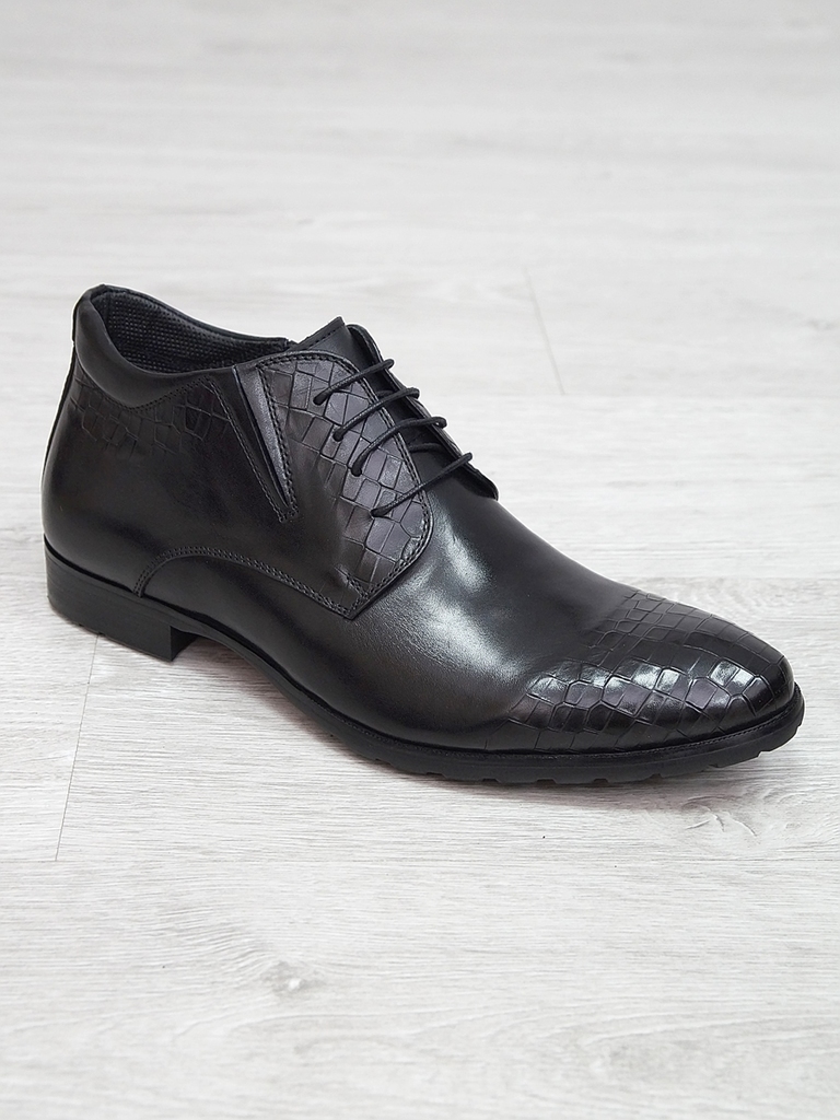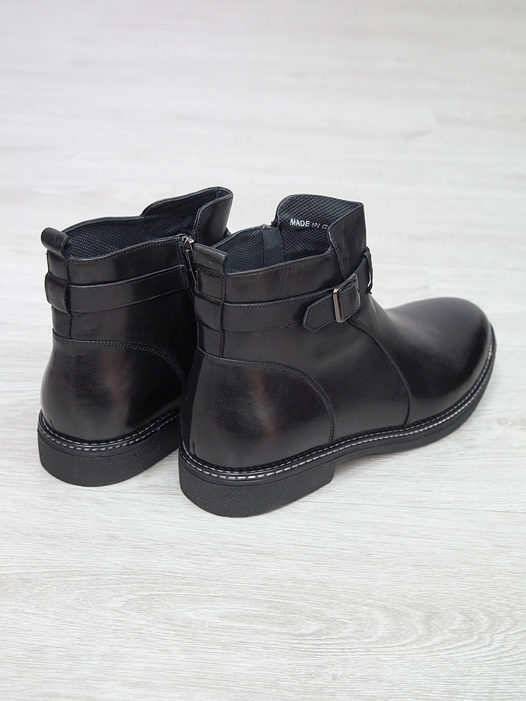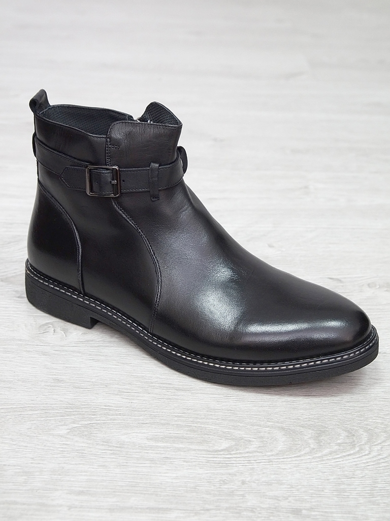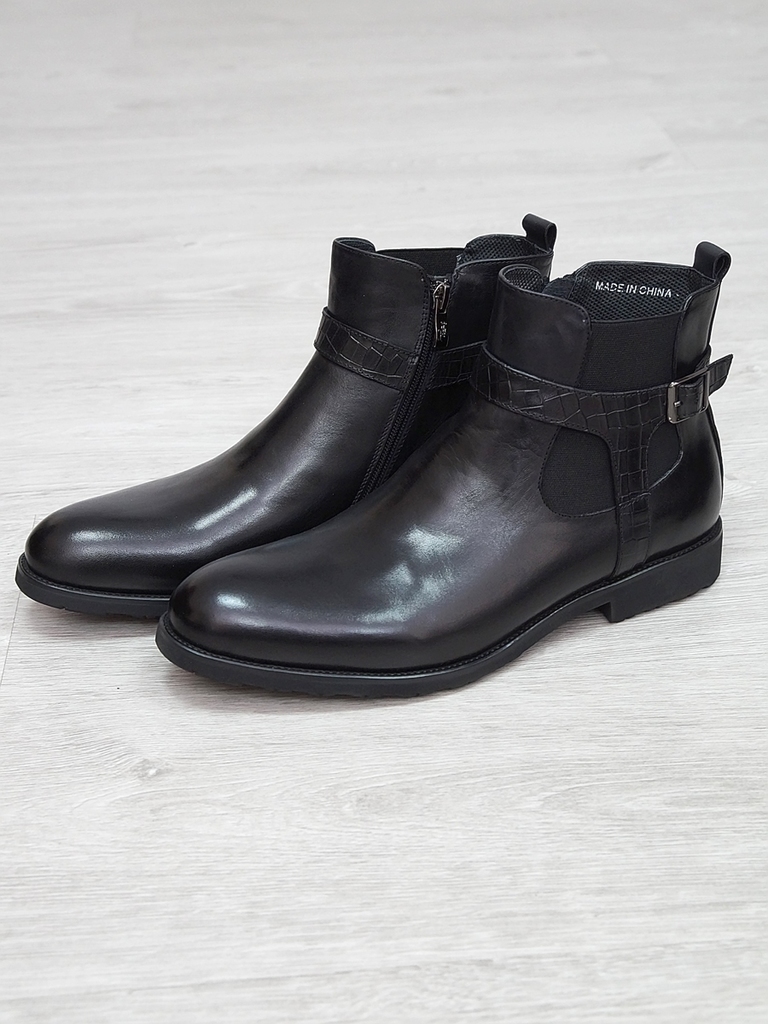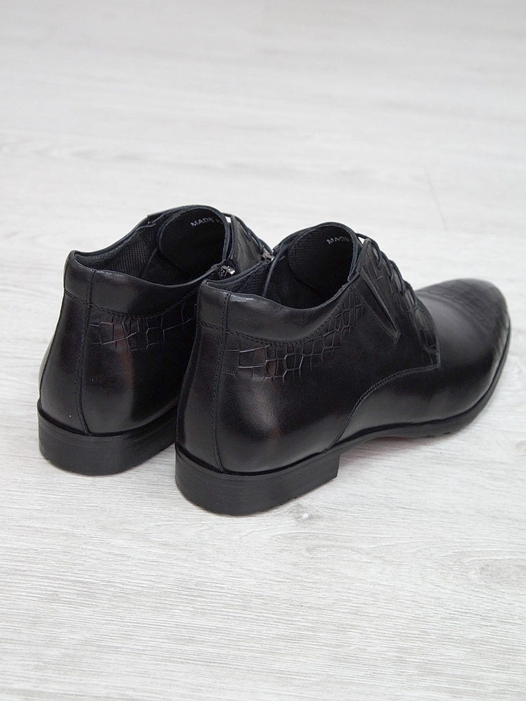 Артикул: 0236 -H9003-B82-SW3. Сезон: Демисезон. Материал верха: Натуральная кожа, Резинка. Материал подкладки: Натуральная кожа. Размерность: В размер. Цвет: Черный. Производство: Китай. Эти демисезон... Показать описаниеные кожаные ботинки представляют собой сочетание стильного дизайна, высокого качества материалов и максимального комфорта. Верх выполнен из гладкой натуральной кожи черного цвета, которая обладает отличной износостойкостью и легкостью в уходе. Модель имеет классическую форму с аккуратным, элегантным силуэтом, что позволяет сочетать их как с деловыми образами, так и с повседневной одеждой. Особенностью этих ботинок является декоративная вставка из искусственной кожи с эффектом «под кожу рептилии» на передней части, добавляющая им оригинальности и современного стиля. Внутри расположена мягкая, дышащая подкладка, которая обеспечивает комфорт и хорошую вентиляцию ног в течение всего дня. Ботинки оснащены удобной застежкой на молнии сбоку, что значительно ускоряет и облегчает процесс надевания и снятия. Регулируемый ремешок с металлической пряжкой по бокам обеспечивает надежную фиксацию стопы и позволяет подогнать обувь под индивидуальную форму ноги. Подошва выполнена из прочной, гибкой резины с рифленым протектором, обеспечивающим отличное сцепление с поверхностью и безопасное передвижение в условиях влажной или скользкой погоды. Высокий, устойчивый каблук и амортизирующая подошва создают комфорт при ходьбе и снижают нагрузку на стопу. Эти кожаные ботинки — универсальный выбор для межсезонья, они отлично сочетаются с классическими брюками, джинсами или casual-костюмами, подчеркнут ваш стиль и обеспечат надежную защиту ног в переменчивых погодных условиях. Подробное описание: https://obuv-tut2000.ru/magazin/product/polusapogi-muzhskie-izzy-0236