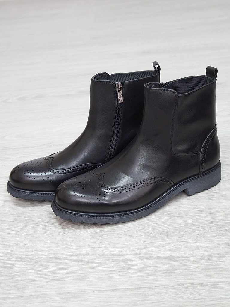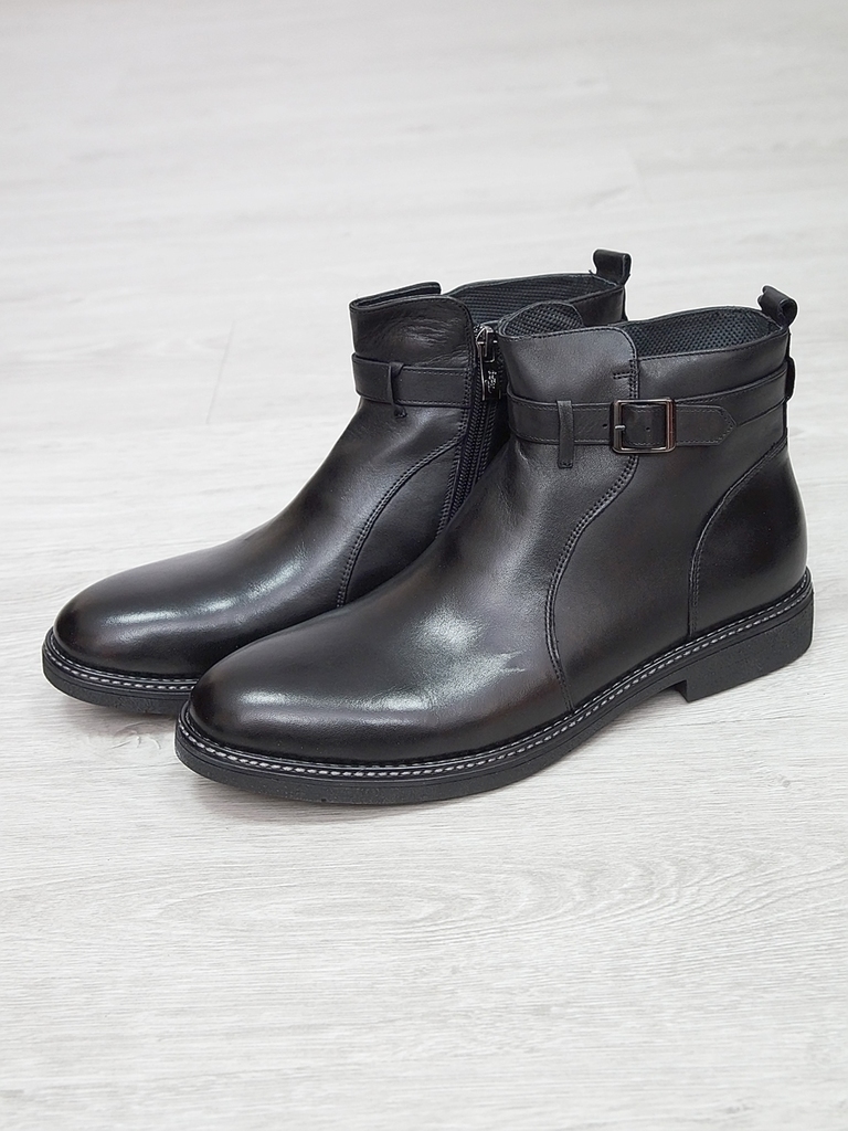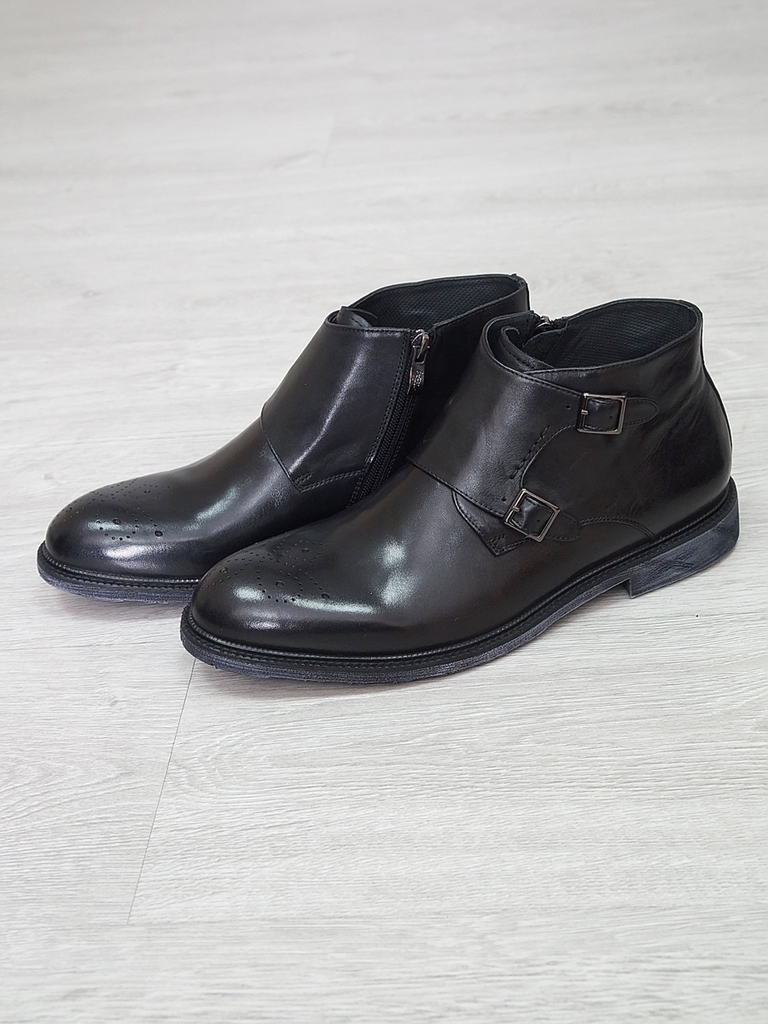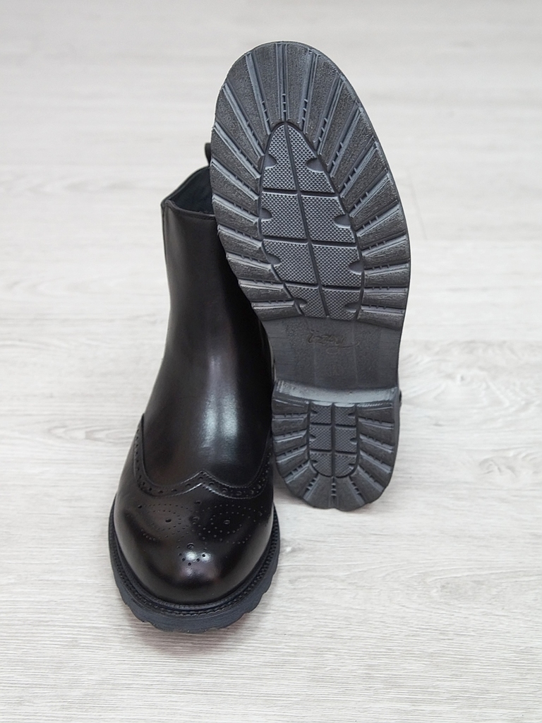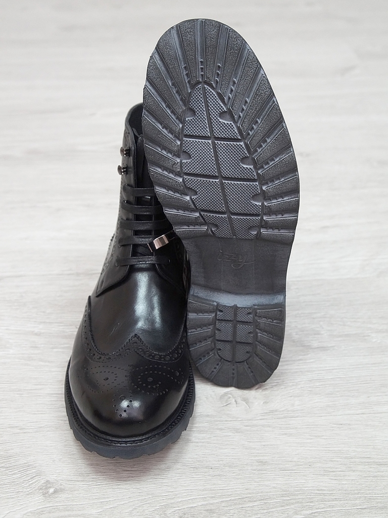 Артикул: 0213 -R0564-D4-SW3. Сезон: Демисезон. Материал верха: Натуральная кожа. Материал подкладки: Натуральная кожа. Размерность: В размер. Цвет: Черный. Производство: Китай. Эти демисезонные кожаны... Показать описаниее ботинки представляют собой элегантное и практичное решение для прохладных дней. Верх выполнен из высококачественной натуральной кожи черного цвета, которая отличается высокой износостойкостью, водоотталкивающими свойствами и стильным глянцевым блеском. Модель имеет классический дизайн с аккуратным перфорационным узором на мысе, что не только придает ей изысканный вид, но и способствует дополнительной вентиляции. Обувь оснащена удобной застежкой-блистером в виде бокового молнии, что значительно облегчает надевание и снятие ботинок, а также позволяет регулировать плотность посадки по ноге. Внутри находится мягкая кожаная подкладка, которая обеспечивает комфорт и тепло в прохладную погоду, предотвращая натирание и создавая приятное ощущение при ношении. Подошва из прочного резинового материала с рифленым протектором обеспечивает отличное сцепление с любой поверхностью, что делает эти ботинки надежными и безопасными при любых условиях. Каблук средней высоты обеспечивает устойчивость и комфорт при ходьбе, а прочные кожаные ремешки с металлическими пряжками придают модели дополнительную изящность и стиль. Эти кожаные ботинки идеально подойдут для межсезонья, прекрасно сочетаются с классическими костюмами, джинсами или casual-образами, создавая завершенный и элегантный образ. Они станут надежным спутником в повседневной жизни и подчеркнут ваш безупречный вкус. Подробное описание: https://obuv-tut2000.ru/magazin/product/polusapogi-muzhskie-izzy-0213