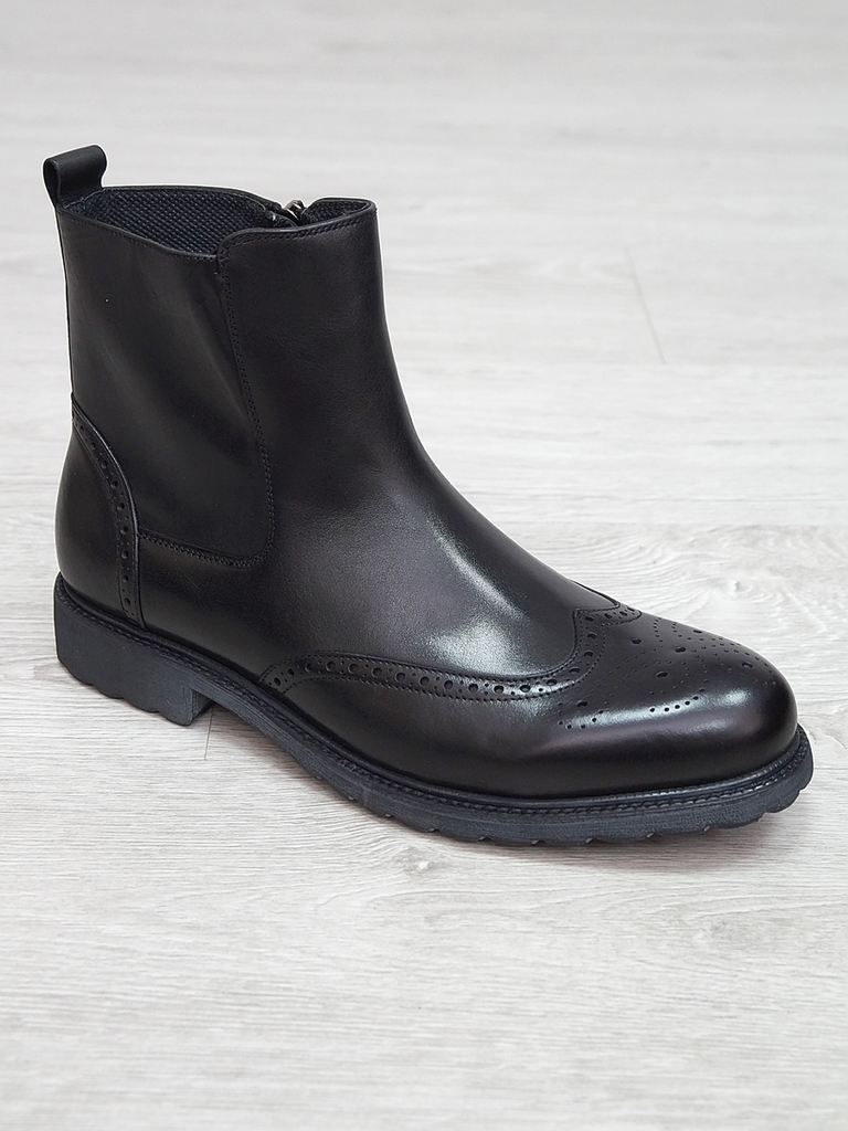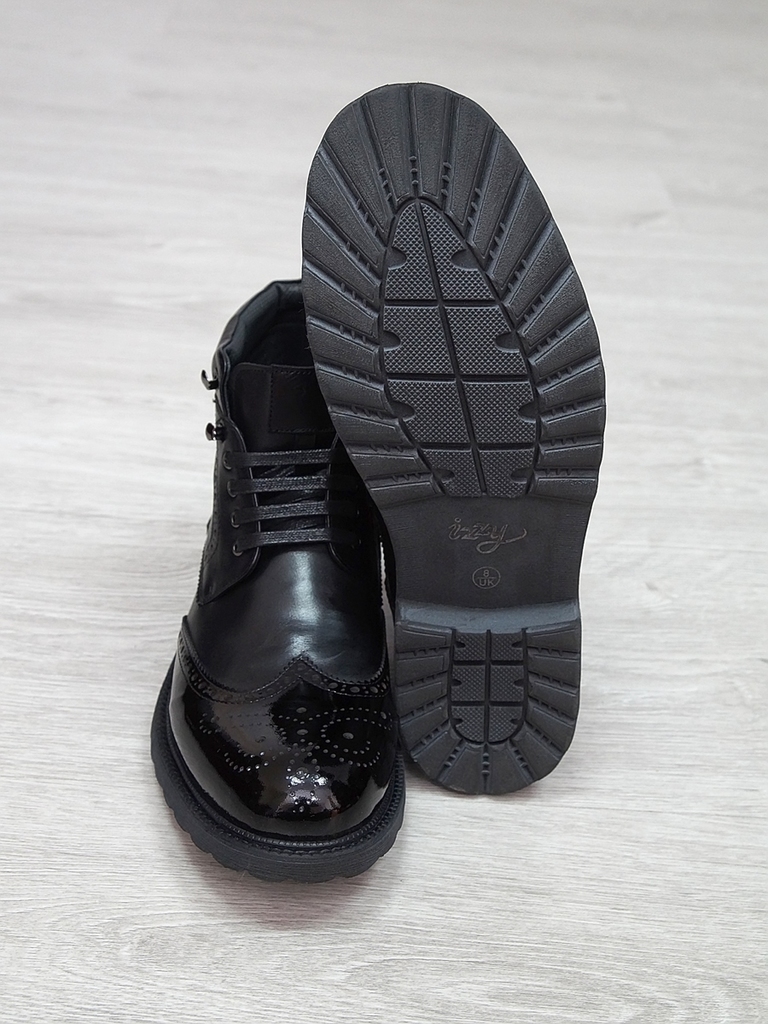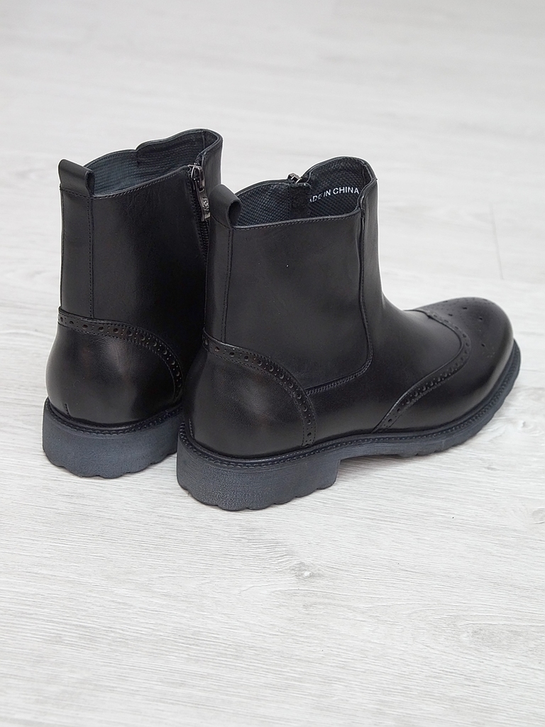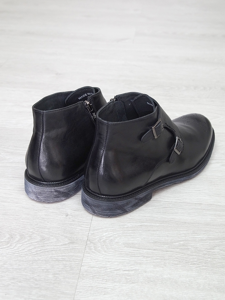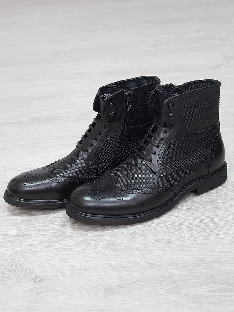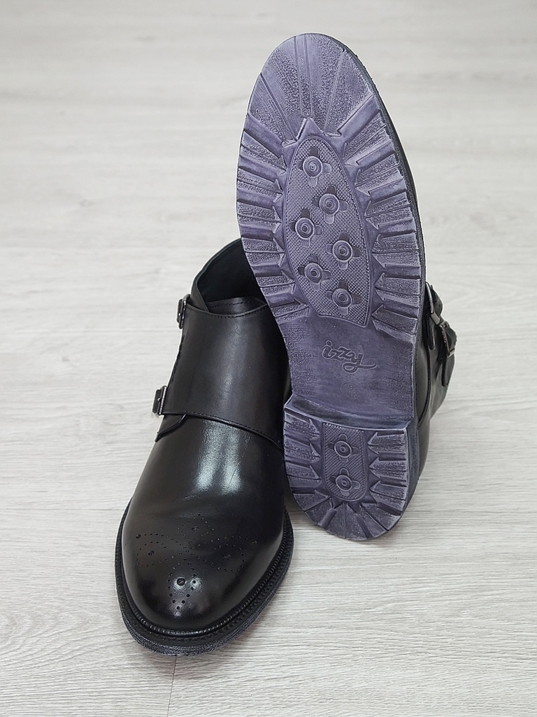 Артикул: 0213 -R0564-D4-SW3. Сезон: Демисезон. Материал верха: Натуральная кожа. Материал подкладки: Натуральная кожа. Размерность: В размер. Цвет: Черный. Производство: Китай. Эти демисезонные кожаны... Показать описаниее ботинки представляют собой элегантное и практичное решение для прохладных дней. Верх выполнен из высококачественной натуральной кожи черного цвета, которая отличается высокой износостойкостью, водоотталкивающими свойствами и стильным глянцевым блеском. Модель имеет классический дизайн с аккуратным перфорационным узором на мысе, что не только придает ей изысканный вид, но и способствует дополнительной вентиляции. Обувь оснащена удобной застежкой-блистером в виде бокового молнии, что значительно облегчает надевание и снятие ботинок, а также позволяет регулировать плотность посадки по ноге. Внутри находится мягкая кожаная подкладка, которая обеспечивает комфорт и тепло в прохладную погоду, предотвращая натирание и создавая приятное ощущение при ношении. Подошва из прочного резинового материала с рифленым протектором обеспечивает отличное сцепление с любой поверхностью, что делает эти ботинки надежными и безопасными при любых условиях. Каблук средней высоты обеспечивает устойчивость и комфорт при ходьбе, а прочные кожаные ремешки с металлическими пряжками придают модели дополнительную изящность и стиль. Эти кожаные ботинки идеально подойдут для межсезонья, прекрасно сочетаются с классическими костюмами, джинсами или casual-образами, создавая завершенный и элегантный образ. Они станут надежным спутником в повседневной жизни и подчеркнут ваш безупречный вкус. Подробное описание: https://obuv-tut2000.ru/magazin/product/polusapogi-muzhskie-izzy-0213