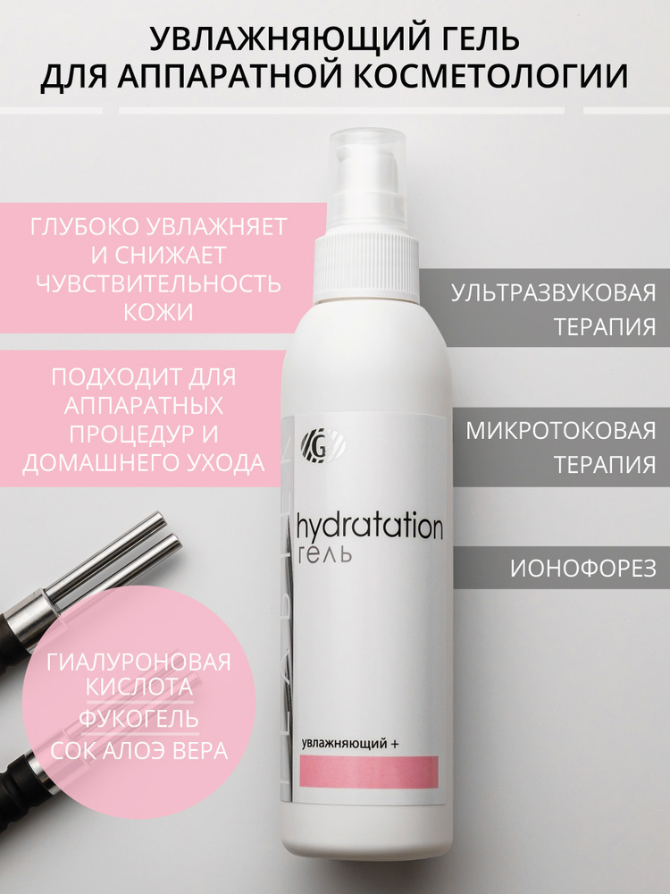 Гель увлажняющий + это косметическое средство для профессионального и домашнего ухода за кожей лица, шеи и декольте с целью качественного увлажнения и защиты кожи от агрессивных факторов внешней среды... Показать описание. Высокомолекулярная гиалуроновая кислота активно увлажняет поверхностные слои кожи, восстанавливает гидролипидную мантию. Сок Алоэ Вера повышает иммунитет клеток кожи, а также является источником необходимых микроэлементов. Фукогель создает оптимальные условия для существования нормальной микрофлоры кожи и способствует повышению уровня увлажнённости эпидермиса, обладает эффектом anti-pollution. Гель обладает эффектом длительного увлажнения кожи, при этом оставаясь проницаемым для воздуха, обеспечивает комфортные ощущения после нанесения, повышать тонус и тургор кожи за счет увлажнения эпидермиса, уменьшает раздражение кожи, снижает её чувствительность и улучшает барьерную функцию. Состав: вода очищенная, глицерин, пропиленгликоль, гиалуроновая кислота, сок Aloe Vera, поливинилпирролидон, карбомер нейтрализованный, метилпарабен, пропилпарабен, протектол, дисодиум ЭДТА, отдушка, краситель пищевой. Показания: для всех типов кожи. Область применения: ультразвуковая, микротоковая терапия, ионофорез, профессиональный и домашний уход. Методика работы: — при ультразвуковой терапии гель нанести тонким слоем на очищенную кожу и, плотно прижимая манипулу к коже, скользящими движениями выполнить процедуру (5-15 минут). При необходимости для лучшего скольжения можно добавлять гель. Удалить излишки геля. Расход геля 3-7 мл на процедуру. — при микротоковой терапии при использовании перчаток или ватных палочек смочить их гелем и выполнить процедуру (15-20 мин), при необходимости добавляя гель. Удалить излишки геля. Расход геля 3-7 мл на процедуру. — при ионофорезе проводить с положительного и отрицательного полюсов последовательно по 5 минут. Удалить излишки геля. Расход геля 3-5 мл на процедуру. — в качестве увлажняющей маски нанести гель плотным слоем на очищенную и тонизированную кожу на 15 минут под пленку. Удалить излишки геля. Расход геля 7 мл на процедуру. — для домашнего ухода нанести гель тонким слоем на очищенную кожу и втирать легкими массажными движениями до полного впитывания. Применять 1-2 раза в день (утром лии вечером). Можно использовать под крем или тональную основу. Расход геля 2-4 мл на процедуру.