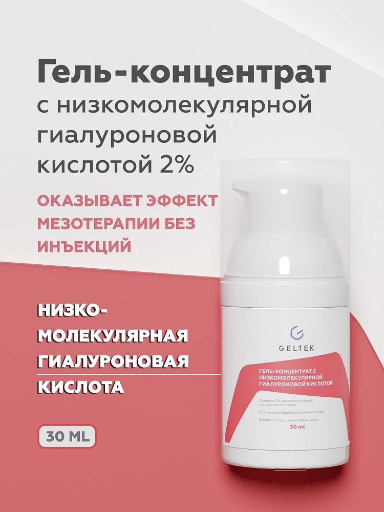 Основной активный ингредиент геля-концентрата - низкомолекулярная гиалуроновая кислота. Она свободно проникает через кожный покров, активно воздействует на морщины и разглаживает их, стимулирует выраб... Показать описаниеотку естественной гиалуроновой кислоты клетками кожи. За счет высокой концентрации, гель оказывает эффект мгновенного лифтинга и позволяет достигнуть максимального эффекта от аппаратной косметологии с первой процедуры, не прибегая к инъекцмонным методикам и пластической хирургии. Способ применения: Показания: возрастные изменения кожи, глубокие морщины, обезвоженная кожа, нарушение гидролипидной мантии и тургора кожи. Область применения: лазерная, микротоковая, ультразвуковая терапия, ионофорез, электропорация, RF-терапия, профессиональный и домашний уход. Методика работы: —при ультразвуковой терапии гель нанести на очищенную кожу тонким слоем и скользящими движениями манипулы, плотно прижимая ее к коже, выполнить процедуру (10 минут). Для лучшего скольжения можно добавлять тоник с гиалуроновой кислотой и эластином. Удалить излишки геля. Расход геля 3-7 мл на процедуру — при микротоковой терапии при использовании перчаток или ватных палочек смочить их гелем и выполнить процедуру (15-20 мин), при необходимости добавляя гель. Удалить излишки геля. Расход геля 3-5 мл на процедуру — при лазерной терапии гель нанести на кожу плотным слоем и работать излучателем, согласно протоколу методики, при необходимости добавляя гель для скольжения. Удалить излишки геля. Расход геля 3-7 мл на процедуру — при ионофорезе проводить в течение 10 минут с отрицательного полюса. Удалить излишки геля. Расход геля 3-5 мл на процедуру — в качестве маски нанести гель плотным слоем на очищенную и тонизированную кожу на 15 минут. Удалить излишки геля. Расход геля 5 мл на процедуру — в качестве активного концентрата под пластифицирующие (в том числе альгинатные) маски нанести гель при помощи кисточки или ватного диска на лицо, сверху нанести маску. Расход геля 2-3 мл на процедуру — при RF-терапии гель наносить на кожу плотным слоем и работать манипулой согласно протоколу методики. В процессе процедуры удалять отработанный гель и добавлять новый. Удалить излишки геля. Расход геля 5-15 мл на область 100 см2 — при электропорации провести процедуру согласно инструкции к аппарату. Для глубокого проникновения в подкожные слои рекомендуется использование аппаратов c приборами WELSS WS 7030, WELSS WS 7065 WS 7060 WELSS WS 7040, WELSS WS 7050 WELSS WS 7055, WELSS WS 8010 WELSS WS 8020.