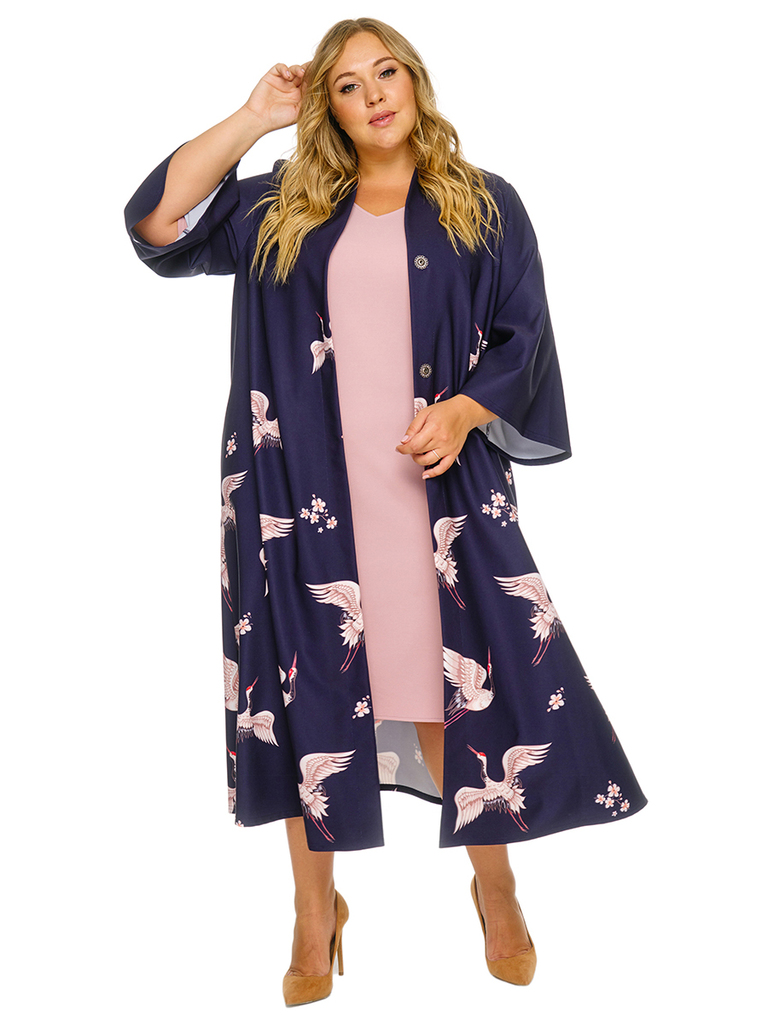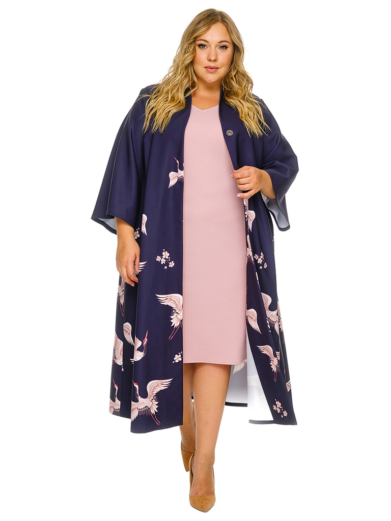 Удлиненный свободный кардиган в стиле "кимоно" из крепа с эластаном. обработкой. Скругленный край борта спереди плавно переходит в аккуратную цельнокроенную стойку на спинке, подчеркивая изящество&nb... Показать описаниеsp; линий. Рукав расклешенный. Застежка на 2 кнопки. Завязывается на пояс в тон основной ткани. Ткань - креп с эластаном, состав: 67%-полиэстер, 30%-вискоза, 3%-эластан. Цвет - мультиколор. Пояс в комплекте. * длина изделия по спинке 128 см (с учетом цельнокроенной стойки) * длина рукава 50 см * соответствует измерениям базовых размеров 58 - 62 * соответствует измерениям базовых размеров 58 - 62