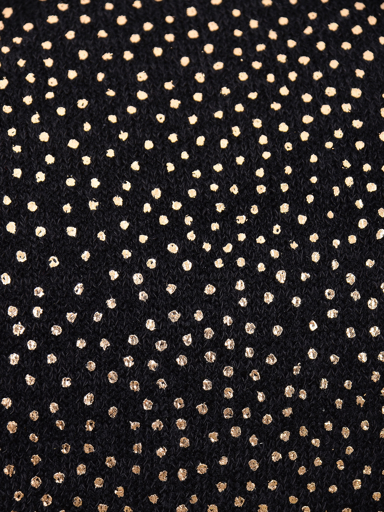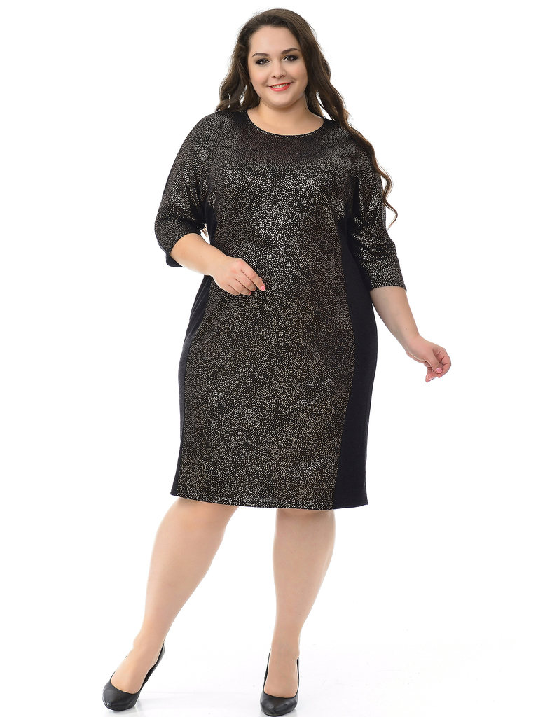 Платье полуприлегающего силуэта из искусственной ангоры. Рукав цельнокроеный. Центральная и верхняя часть переда из ткани-компаньона с золотым напылением. Платье выполнено из нового артикул... Показать описаниеа джерси, имитирующего ангору. Ткань-компаньон с напылением благодаря силиконовой обработке не осыпается, не пиллингуется. Мягкая, нежная и комфортная; блестящая и шелковистая, приятная на вид; очень лёгкая, почти невесомая; не колет. Ткань- искусственная ангора, состав: 67% полиэстер, 30% вискоза; 3% эластан. Цвет - черный. длина изделия по спинке 103 см * соответствует измерениям базовых размеров 58 - 62 Рост модели 175 см. * соответствует измерениям базовых размеров 58 - 62