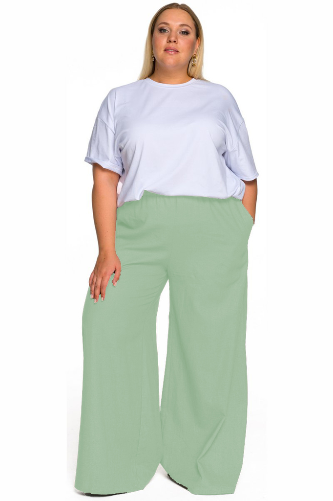 Брюки широкие из льна с карманами, цвет фисташковыйВопросы по товару