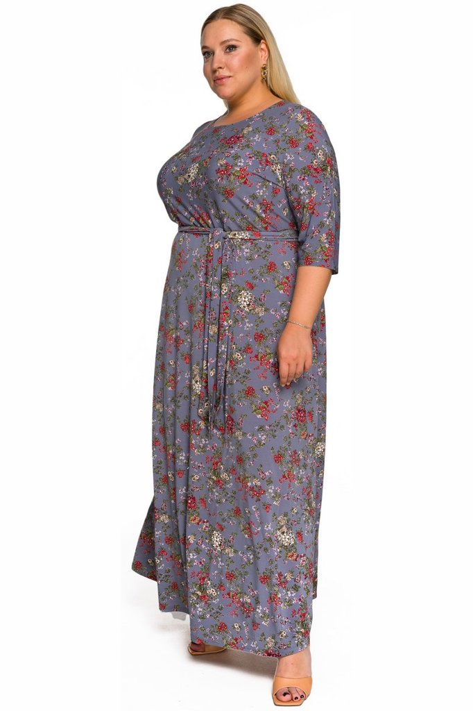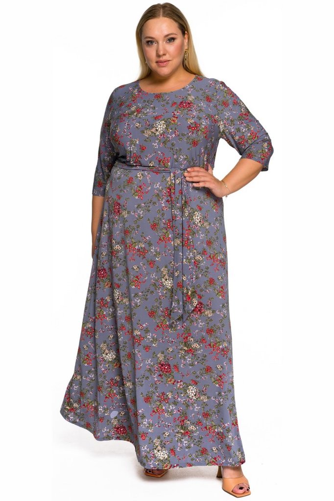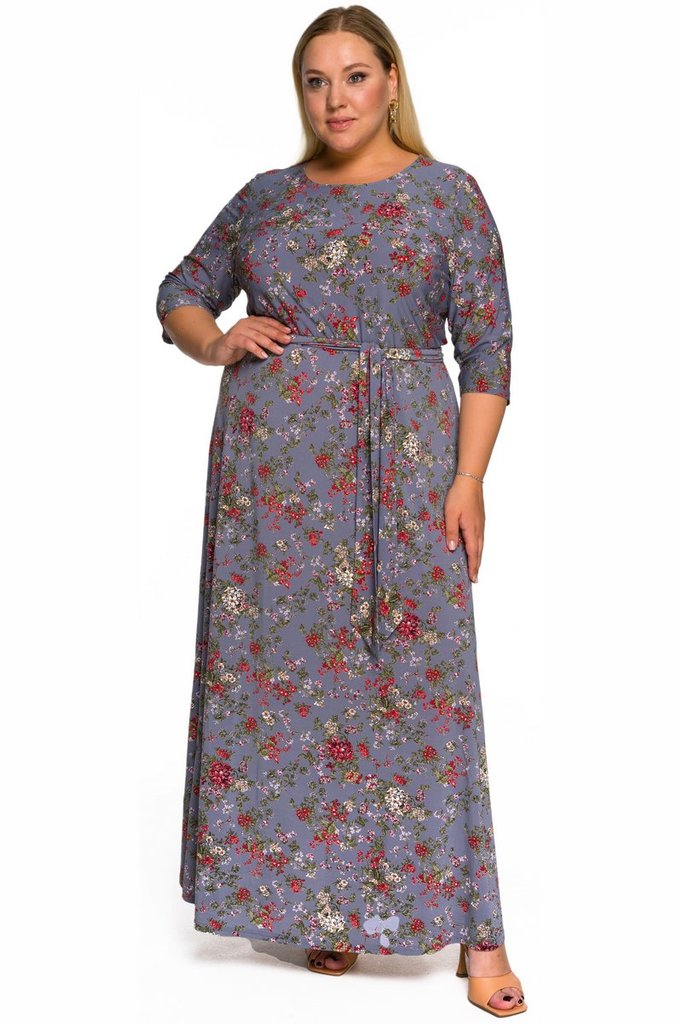 Платье длинное, рукава 3/4, вырез горловины округлый. Пояс из основной ткани в комплекте. Ткань - трикотаж-масло, состав: 70% полиэстер, 25% вискоза, 5% эластан. Цвет - мультиколор Длина из... Показать описаниеделия - 143 см * соответствует измерениям базовых размеров 58 - 62