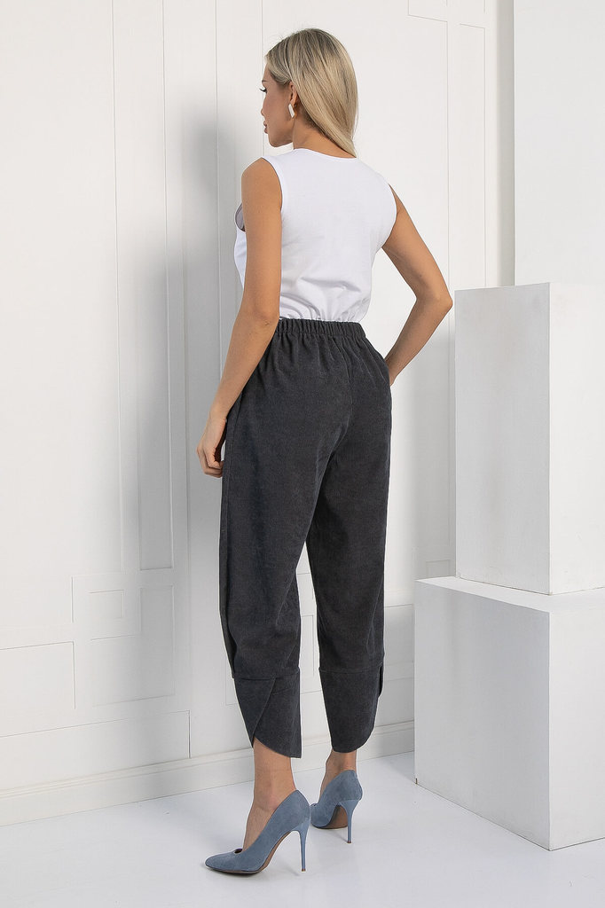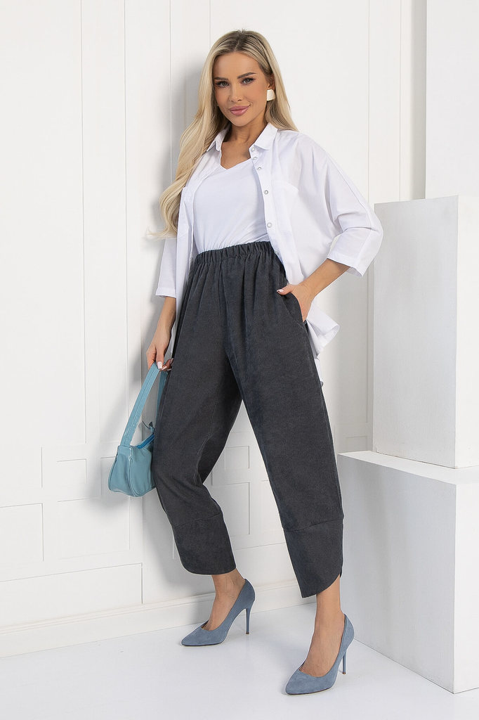 Артикул: Б12847-10М. Тип ткани: синтетический. Состав: 98% полиэстер, 2% эластан. Материал: вельвет Цвет: серый. Принт: отсутствует. Вид застежки: без застёжки. Тип посадки: средний. Фа... Показать описаниесон: джоггеры. Пояс: притачной. Крой: свободный. Резинка в поясе: есть. Карманы: есть. Декоративные элементы: отсутствуют. Длина готового изделия по внутреннему шву: 44/ 64 см, 46/ 65 см, 48/ 66 см, 50/ 67 см, 52/ 68 см, 54/ 69 см. Длина готового изделия по боковому шву: 44/ 88 см, 46/ 89 см, 48/ 90 см, 50/ 91 см, 52-54/ 92 см. Размер изделия на модели: 44 Рост модели: 168 см. Брюки отсняты с рубашкой арт. Б12863-10М Объёмные брюки в стиле бохо — это свободный непринуждённый стиль в современной моде. Шароварный силуэт создается за счет резинки по талии, свободной посадки в бедрах, бокового защипа по низу и оригинального высокого манжета в виде тюльпана. Свободные, прямые, просторные брюки бананы выгодно подчеркивают женские формы и скрывают недостатки. Комбинируйте их с различными видами топов, джемперов, блузок или футболок. Различные аутфиты сделают вас стильной, модной для любого выхода. Такие штаны универсальны и могут быть частью городского casual образа или классического делового, повседневного школьного и даже спортивного. Брюки бананы можно носить как домашнюю одежду, они незаменимы для поездок в путешествие или командировки. Уход за изделием: ручная стирка до 30 градусов; нельзя отбеливать; отжим запрещён; гладить при t не более 110 С; гладить с изнанки. Внимание! Рекомендуем ориентироваться на размерную сетку и выбирать свой привычный размер, согласно размерной таблице. *Допуск отклонения длины при массовом производстве 1-3 см является нормой.
