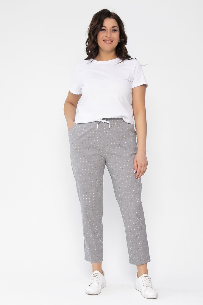 Состав: 95% хлопок, 5% эластан. Материал: джинс-стрейч. Цвет: серый. Принт: мелкий горох. Тип посадки: средний. Фасон: деним. Пояс: притачной. Крой: зауженный. Резинка в поясе: ест... Показать описаниеь. Карманы: есть. Вид застежки: без застёжки. Декоративные элементы: отсутствуют. Длина готового изделия по внутреннему шву: 46-50/ 66 см, 52-56/ 67 см. Длина готового изделия по боковому шву: 46-48/ 89 см, 50-52/ 90 см, 54-56/ 91 см. Женские брюки из хлопковой ткани со стрейчем удобны в повседневной жизни. Брюки с притачным поясом на резинке со шнуром, с карманами в боковом. Брюки по фигуре, абсолютно не сковывают движений, комфортны в носке. Эти брюки хорошо сочетаются с обувью на низкой подошве и с различным верхом. Уход за изделием: ручная стирка до 30 градусов; нельзя отбеливать; отжим запрещён; гладить при t не более 110 С; гладить с изнанки. Внимание! Рекомендуем ориентироваться на размерную сетку и выбирать свой привычный размер, согласно размерной таблице. *Допуск отклонения длины при массовом производстве 1-3 см является нормой.