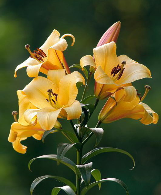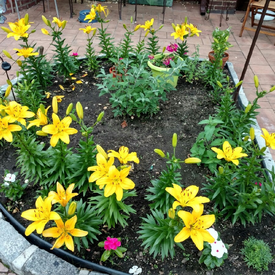 Сорт весьма необычный — на крепких, средней высоты, стеблях размещаются крупные, канареечно-желтые цветки, вполне оправдывающие название сорта * Высота: 110 см * Диаметр цветка: до 15 см Агротехника: ... Показать описаниеЛилии выращиваются на одном месте (без пересадки) в течение 3-5 лет. Под посадку лилий выбирают места, хорошо защищенные от сильных ветров (однако хорошо проветриваемые), с солнечным местоположением или частичной полутенью. Почвы должны быть хорошо дренированные (лилии не выносят застоя воды в корнях), рыхлыми и плодородными. Перед посадкой почву обрабатывают на глубину 35-40 см, добавляют удобрения. Глубина посадки луковиц: * для низкорослых сортов (крупные луковицы) -10-12 см, с расстоянием между луковицами 15-20 см; * для среднерослых сортов (крупные луковицы) - 12-15 см, с расстоянием между луковицами 20-25 см; * для высокорослых сортов (крупные луковицы) - 15-20 см, с расстоянием между луковицами 25-30 см. Делают лунки, на дно которых насыпают песок, распределяют луковицы, присыпают корни небольшим количеством песка, и засыпают их почвой. Песок помогает уберечь луковицу от излишней влаги и инфекций, находящихся в земле. Участок с высаженными луковицами поливают. Последующий уход заключается в периодическом поливе (раз в 7-10 дней), подкормках и рыхлении почвы. В конце сезона цветоносы обрезают на уровне земли. Ежегодно осенью на участки с лилиями рекомендуется вносить хорошо перепревший компост. В районах с суровым климатом, посадки лилий укрывают лапником слоем 15-20 см. Весной, когда минует угроза заморозков, укрытие снимают.