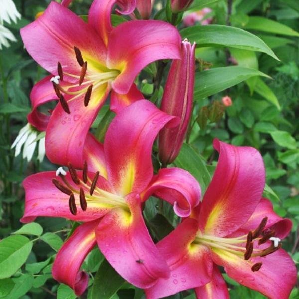 Лилия из серии "Treelilies", при благоприятных условиях на 3-4 год после посадки может достигнуть в высоту 2 м и нести на себе до 30 бутонов! Цветки диаметром 20 см, теплого розовато-малинового оттенк... Показать описаниеа, с выраженным ароматом. Края шелковистых лепестков слегка гофрированы, кончики загнутые. Неприхотливая, устойчивая к грибным заболеваниям, зимостойкая лилия. * Высота: 140 см * Диаметр цветка: 20 см Агротехника: Лилии выращиваются на одном месте (без пересадки) в течение 3-5 лет. Под посадку лилий выбирают места, хорошо защищенные от сильных ветров (однако хорошо проветриваемые), с солнечным местоположением или частичной полутенью. Почвы должны быть хорошо дренированные (лилии не выносят застоя воды в корнях), рыхлыми и плодородными. Перед посадкой почву обрабатывают на глубину 35-40 см, добавляют удобрения. Глубина посадки луковиц: * для низкорослых сортов (крупные луковицы) -10-12 см, с расстоянием между луковицами 15-20 см; * для среднерослых сортов (крупные луковицы) - 12-15 см, с расстоянием между луковицами 20-25 см; * для высокорослых сортов (крупные луковицы) - 15-20 см, с расстоянием между луковицами 25-30 см. Делают лунки, на дно которых насыпают песок, распределяют луковицы, присыпают корни небольшим количеством песка, и засыпают их почвой. Песок помогает уберечь луковицу от излишней влаги и инфекций, находящихся в земле. Участок с высаженными луковицами поливают. Последующий уход заключается в периодическом поливе (раз в 7-10 дней), подкормках и рыхлении почвы. В конце сезона цветоносы обрезают на уровне земли. Ежегодно осенью на участки с лилиями рекомендуется вносить хорошо перепревший компост. В районах с суровым климатом, посадки лилий укрывают лапником слоем 15-20 см. Весной, когда минует угроза заморозков, укрытие снимают.