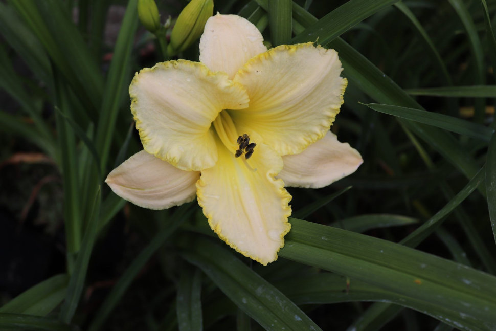 Практически белый сорт лилейника, с большим жёлто-зелёным горлом и гофрированными краями того же цвета. Сорт хорошо растёт, зимостойкость высокая. Среднепоздний полувечнозелёный тетраплоид. Без аромат... Показать описаниеа и повторного цветения. * Высота: 50-70 см * Диаметр цветка: 12-15 см