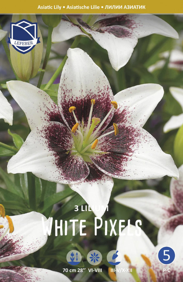 Прекрасный азиатский сорт из серии Танго. Неприхотливое и морозоустойчивое растение. Лепестки сливочно-белые с пурпурным крапом в середине цветка, переходящим на внешние края. Высота 90 см, диаметр цв... Показать описаниеетков до 15 см. Агротехника: Лилии выращиваются на одном месте (без пересадки) в течение 3-5 лет. Под посадку лилий выбирают места, хорошо защищенные от сильных ветров (однако хорошо проветриваемые), с солнечным местоположением или частичной полутенью. Почвы должны быть хорошо дренированные (лилии не выносят застоя воды в корнях), рыхлыми и плодородными. Перед посадкой почву обрабатывают на глубину 35-40 см, добавляют удобрения. Глубина посадки луковиц: * для низкорослых сортов (крупные луковицы) -10-12 см, с расстоянием между луковицами 15-20 см; * для среднерослых сортов (крупные луковицы) - 12-15 см, с расстоянием между луковицами 20-25 см; * для высокорослых сортов (крупные луковицы) - 15-20 см, с расстоянием между луковицами 25-30 см. Делают лунки, на дно которых насыпают песок, распределяют луковицы, присыпают корни небольшим количеством песка, и засыпают их почвой. Песок помогает уберечь луковицу от излишней влаги и инфекций, находящихся в земле. Участок с высаженными луковицами поливают. Последующий уход заключается в периодическом поливе (раз в 7-10 дней), подкормках и рыхлении почвы. В конце сезона цветоносы обрезают на уровне земли. Ежегодно осенью на участки с лилиями рекомендуется вносить хорошо перепревший компост. В районах с суровым климатом, посадки лилий укрывают лапником слоем 15-20 см. Весной, когда минует угроза заморозков, укрытие снимают.