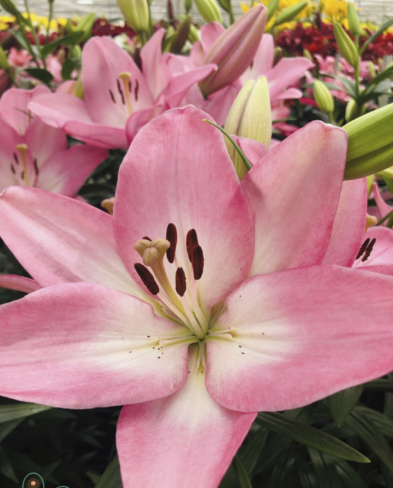 Прекрасная нежная новинка! Цветки перламутрово-светло-розовые с белым центром. Высота: 60-80 см Агротехника: Лилии выращиваются на одном месте (без пересадки) в течение 3-5 лет. Под посадку лилий выби... Показать описаниерают места, хорошо защищенные от сильных ветров (однако хорошо проветриваемые), с солнечным местоположением или частичной полутенью. Почвы должны быть хорошо дренированные (лилии не выносят застоя воды в корнях), рыхлыми и плодородными. Перед посадкой почву обрабатывают на глубину 35-40 см, добавляют удобрения. Глубина посадки луковиц: * для низкорослых сортов (крупные луковицы) -10-12 см, с расстоянием между луковицами 15-20 см; * для среднерослых сортов (крупные луковицы) - 12-15 см, с расстоянием между луковицами 20-25 см; * для высокорослых сортов (крупные луковицы) - 15-20 см, с расстоянием между луковицами 25-30 см. Делают лунки, на дно которых насыпают песок, распределяют луковицы, присыпают корни небольшим количеством песка, и засыпают их почвой. Песок помогает уберечь луковицу от излишней влаги и инфекций, находящихся в земле. Участок с высаженными луковицами поливают. Последующий уход заключается в периодическом поливе (раз в 7-10 дней), подкормках и рыхлении почвы. В конце сезона цветоносы обрезают на уровне земли. Ежегодно осенью на участки с лилиями рекомендуется вносить хорошо перепревший компост. В районах с суровым климатом, посадки лилий укрывают лапником слоем 15-20 см. Весной, когда минует угроза заморозков, укрытие снимают.