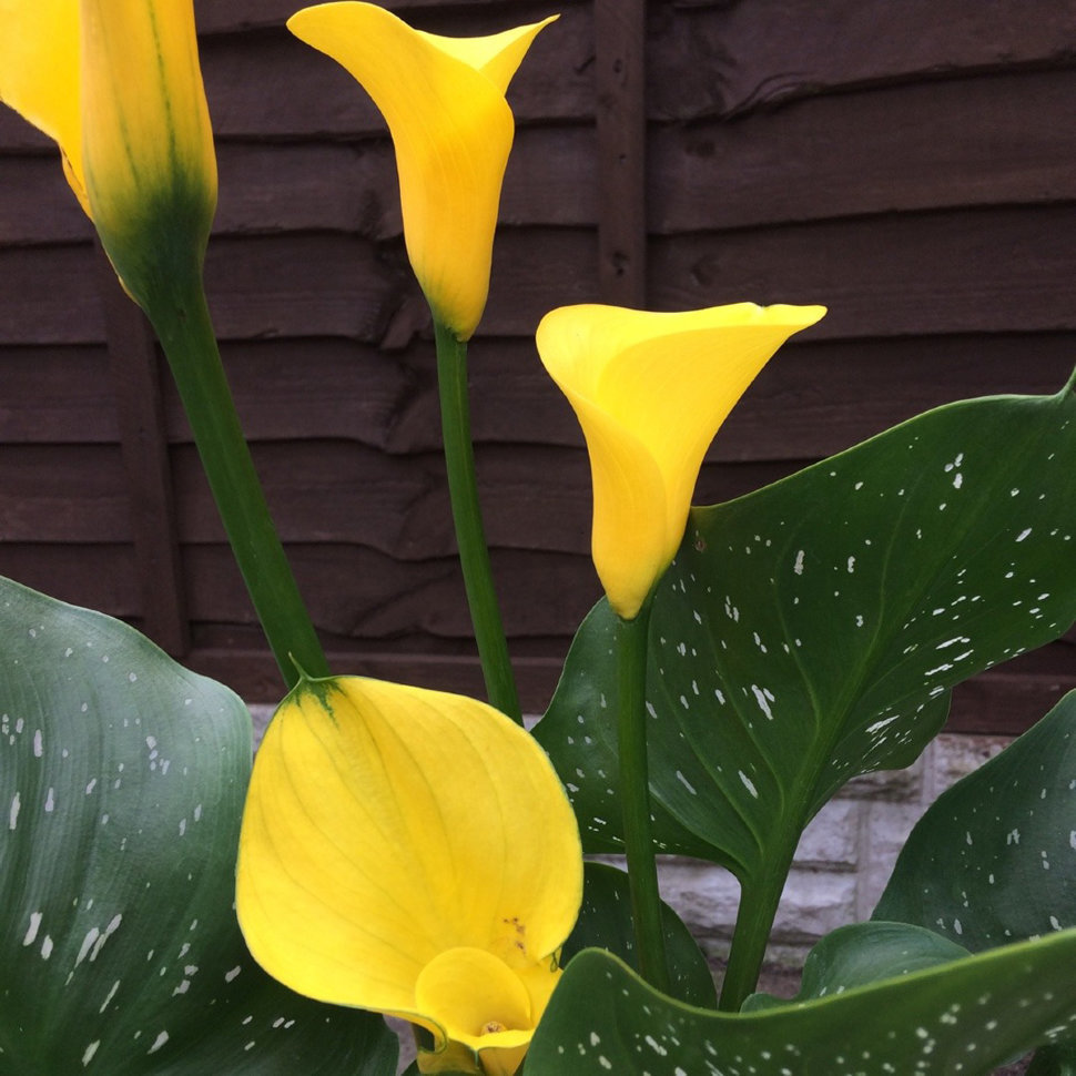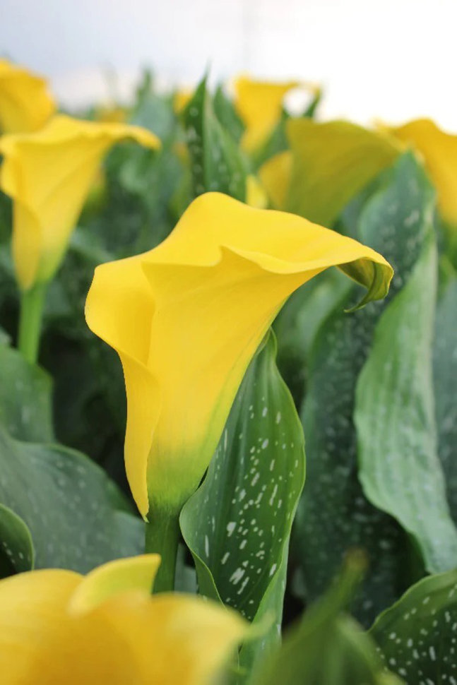 Эта элегантная ярко-жёлтая калла прекрасно будет смотреться в саду и в контейнере. Агротехника: Каллы предпочитают яркий рассеянный свет, от прямых полуденных солнечных лучей растение притеняют. В пер... Показать описаниеиод цветения нуждается в ярком освещении. Почва: хорошо дреннированная. Посадка: луковицы высаживаются в ряд строго горизонтально донцем вниз, а прорастающими побегами вверх в подготовленную небольшую лунку глубиной до 10 см с интервалом 15 см. Посадки обильно проливают для облегчения укоренения. Использование: калла отличается необычной экзотической красотой. Служит прекрасным украшением больших аквариумов, искусственных водоемов, фонтанов. Листья и соцветия устойчивы в срезке и широко используются при составлении букетов и композиций, придавая им необыкновенную изысканность и выразительность.