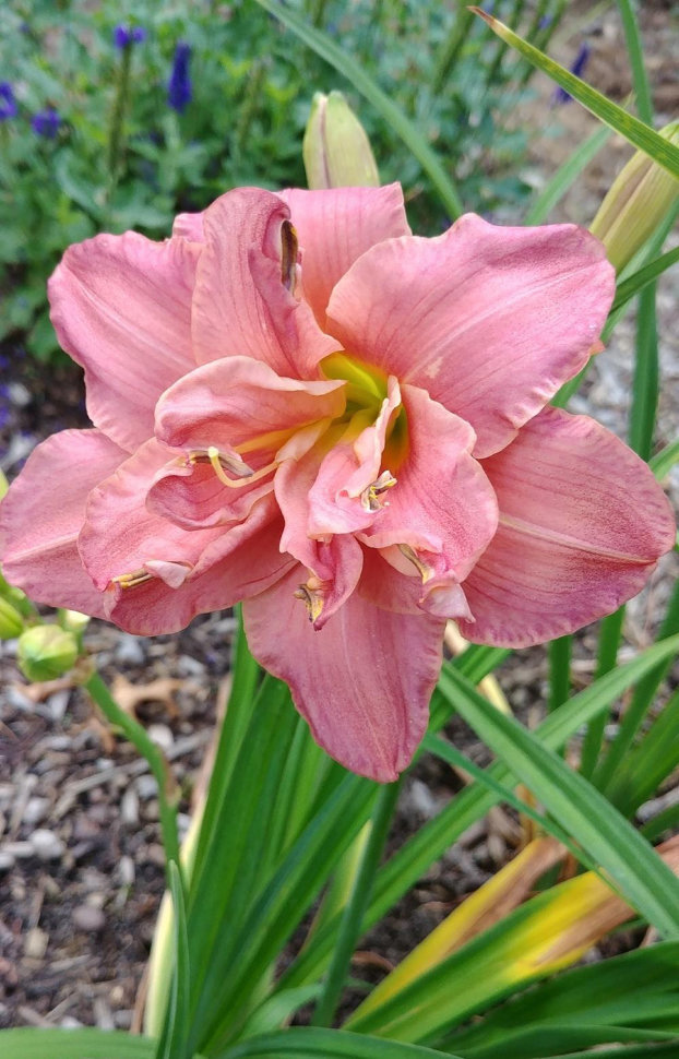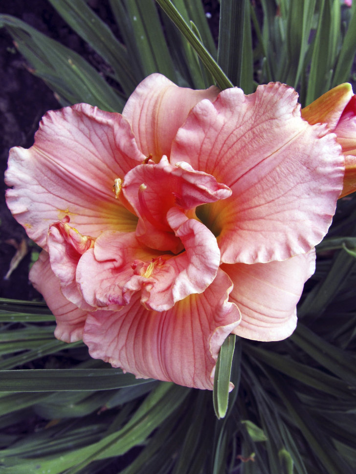 Красивый махровый сорт лилейника с оранжево-розовыми цветками,с жёлто-зелёным горлом. Диплоид раннего срока цветения. Может зацвести повторно. * Высота: 60-70 см * Диаметр цветка: 12 см
