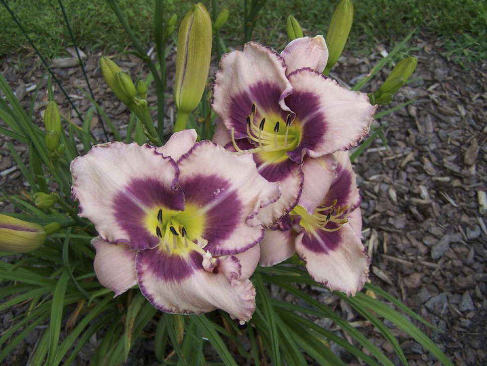 Цветок крупный, светло-сиреневый с лиловым глазком и лиловой каймой по краю гофрированных внутренних лепестков. Желто-зеленое горло. * Срок цветения: средний (начало августа) * Высота: 60-70 см * Диам... Показать описаниеетр цветка: 12-14 см * Зона зимостойкости: 3 (-40 / -34 °C)