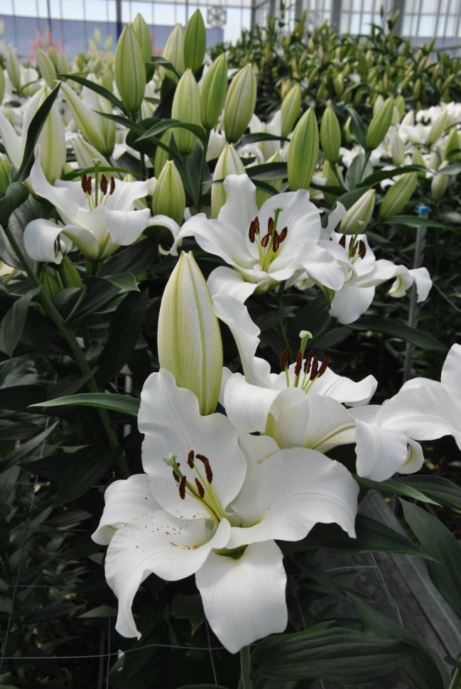 Лилия "Doroso" - это прекрасное представительница ЛА-гибридов, которая поражает своей изящностью и красотой. Цветы одиночные, с диаметром от 15 до 20 см, белые, с легким оттенком слоновой кости. ... Показать описаниеОни выглядят очень изящно и нежно. Агротехника: Лилии выращиваются на одном месте (без пересадки) в течение 3-5 лет. Под посадку лилий выбирают места, хорошо защищенные от сильных ветров (однако хорошо проветриваемые), с солнечным местоположением или частичной полутенью. Почвы должны быть хорошо дренированные (лилии не выносят застоя воды в корнях), рыхлыми и плодородными. Перед посадкой почву обрабатывают на глубину 35-40 см, добавляют удобрения. Глубина посадки луковиц: для низкорослых сортов (крупные луковицы) -10-12 см, с расстоянием между луковицами 15-20 см; для среднерослых сортов (крупные луковицы) - 12-15 см, с расстоянием между луковицами 20-25 см; для высокорослых сортов (крупные луковицы) - 15-20 см, с расстоянием между луковицами 25-30 см. Делают лунки, на дно которых насыпают песок, распределяют луковицы, присыпают корни небольшим количеством песка, и засыпают их почвой. Песок помогает уберечь луковицу от излишней влаги и инфекций, находящихся в земле. Участок с высаженными луковицами поливают. Последующий уход заключается в периодическом поливе (раз в 7-10 дней), подкормках и рыхлении почвы. В конце сезона цветоносы обрезают на уровне земли. Ежегодно осенью на участки с лилиями рекомендуется вносить хорошо перепревший компост. В районах с суровым климатом, посадки лилий укрывают лапником слоем 15-20 см. Весной, когда минует угроза заморозков, укрытие снимают.