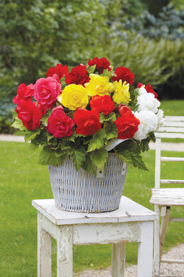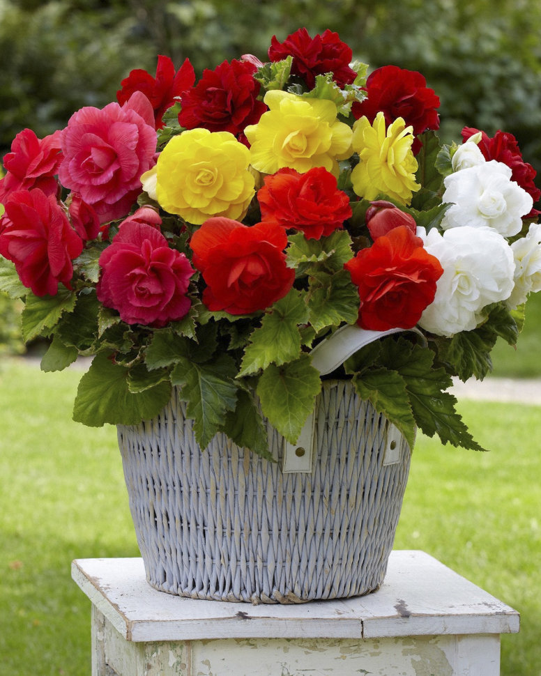 Идеальное растение для подвесных корзин! Превосходная смесь душистых ампельных бегоний трех расцветок. Агротехника: Посадку бегонии клубневой в домашних условиях следует начинать в зависимости от врем... Показать описаниеени высадки растений в грунт. Для высаживания в цветник на балконе или в открытый грунт к началу лета ее начинают проращивать уже в марте-апреле. Старые клубни, которые провели зиму в горшках, в марте выставляют в более теплое место и начинают поливать. После проклевывания почек емкости ставят поближе к свету, но в полутень. Для посадки следует заранее подготовить неглубокие емкости, заполнив их специальной рыхлой и питательной почвосмесью. Ее можно купить готовую или сделать из нескольких компонентов: компоста, песка и торфа с добавлением небольшого количества древесной золы. Внизу емкости насыпают дренаж: 1,5-2 см мелкого керамзита или битых черепков. Горшок нужно заполнить на 2/3 высоты, чтобы до края оставалось 7 - 8 см. Грунт уплотнить и пролить приготовленным раствором с комплексными удобрениями, предназначенными для цветущих растений. Период покоя у бегонии обычно завершается к концу февраля, что становится заметным по началу прорастания почек крупных экземпляров и быстрому пробуждению более мелких. Оптимальное время посадки клубневой бегонии приходится на конец марта и начало апреля. Главная задача при высадке: не перепутать низ и верх у клубня. Для этого его надо осмотреть, тщательно очистить от старой земли и корешков. Верхнюю часть можно определить по присутствию спящих или уже проснувшихся почек и по следам стеблей, отрезанных в прошлом году. После обработки фунгицидом клубень положить на грунт почками наверх (округлой стороной вниз) и присыпать слоем почвы толщиной 1-1,5 см, полить теплой водой. Клубни ампельных видов бегонии обычно высаживают по одному на емкость, для чего рекомендуют брать торфяные горшочки диаметром 10 - 12 см. В посадочные ящики клубни высаживают по схеме 7 х 7 см. Емкости или горшки ставят на подоконник и проращивают растения при температуре воздуха +18...20 °С. Первые ростки обычно появляются спустя 2 - 3 недели. Их сразу необходимо защитить от прямых солнечных лучей во избежание ожогов. Полив осуществлять регулярно, чтобы не допустить пересыхания почвы. Через 4 - 5 недель после посадки бегонии клубневой уход в домашних условиях предполагает подкормку, которую далее проводят каждые 7 - 10 дней. Удобрения лучше применять жидкие, т. к. их удобно приготовить в нужной пропорции и использовать сразу.