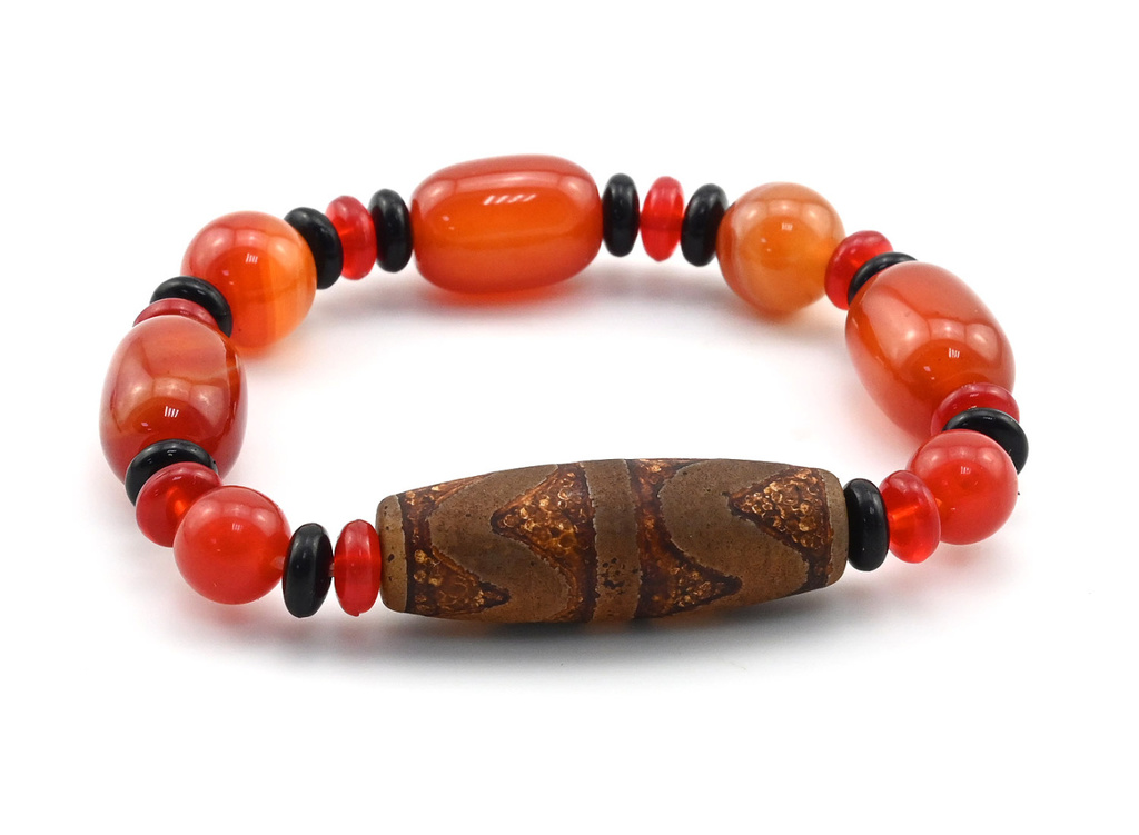 Браслет "Дзи Аристократ" бочонок 14*40мм с сердоликом бочонок 13*18ммВопросы по товару