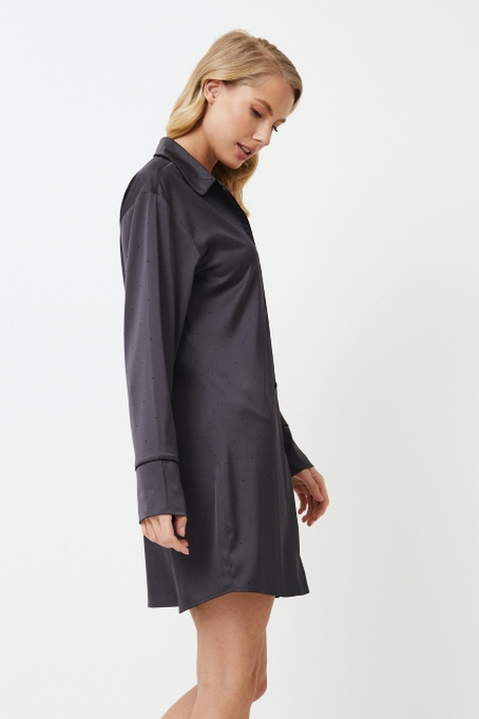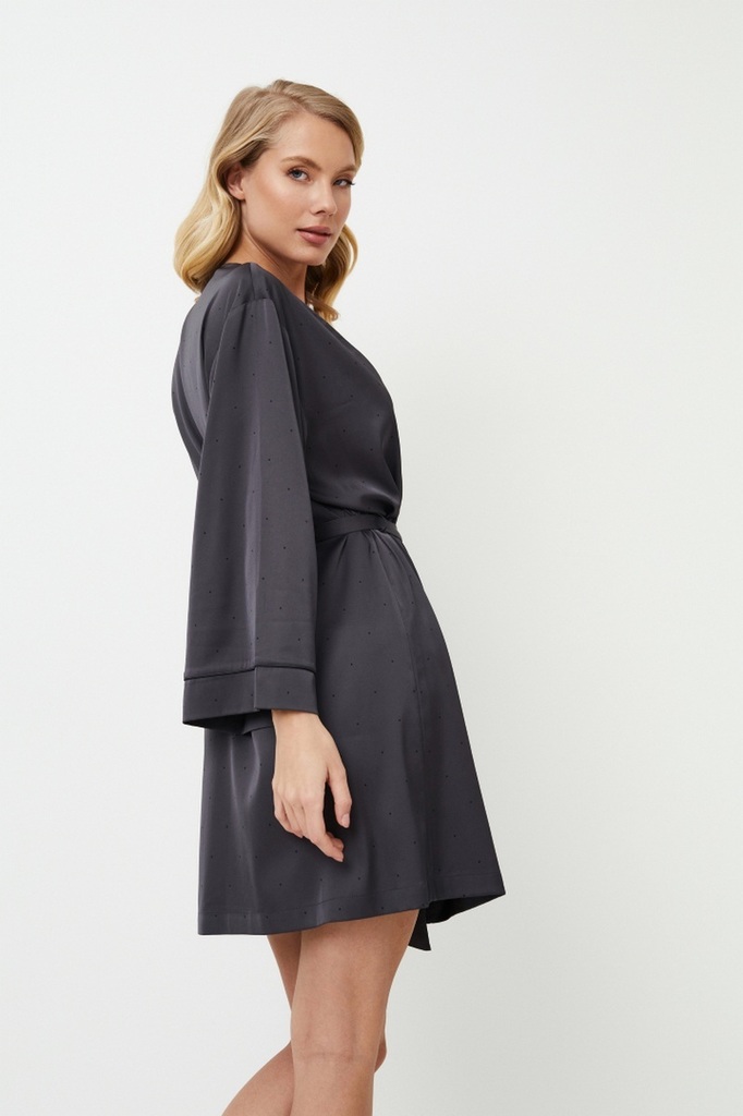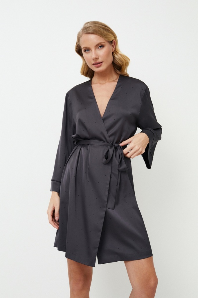 Платье Aurora - элегантный выбор для вечернего наряда. Платье сшито из блестящей плотной темно-серой ткани в мелкий черный горошек, которая создает ауру элегантности и гламура, идеально подходит для т... Показать описаниеех, кто любит выделяться даже в ночной тишине. Платье с широкими рукавами, поясом на талии и длиной выше колена - стильный и элегантный выбор. Сочетайте его с ночной рубашкой Aurora, чтобы создать очаровательное сочетание. Дополните свой ночной образ платьем Aurora, в котором стиль сочетается со смелостью.