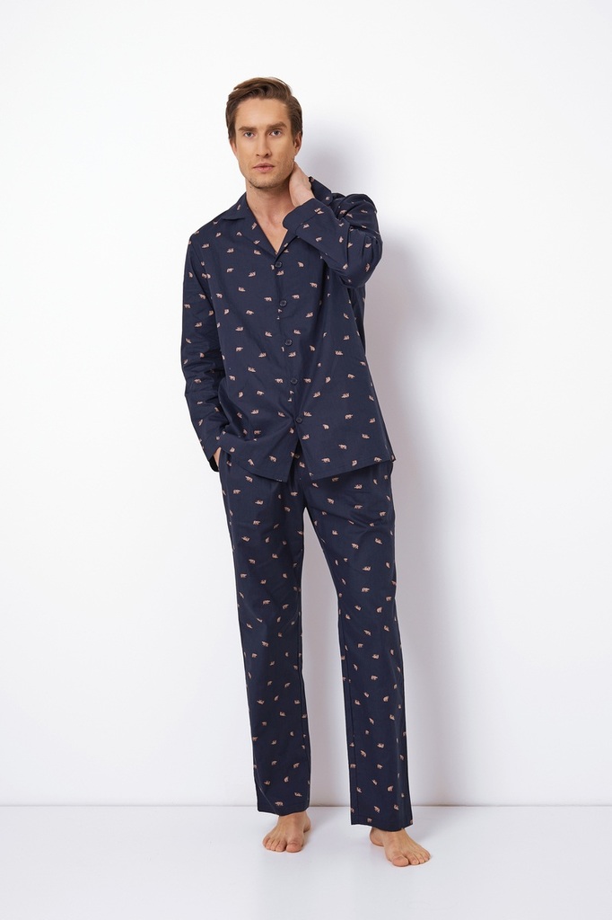 Пижама мужская со штанами ADRIAN для вашего ночного комфорта. Пижама выполнена из хлопковой фланели. Рубашка на пуговицах, с длинными рукавами, отложным воротником и нагрудным карманом. Штаны длинные,... Показать описание свободной формы, с эластичным поясом с завязкой и боковыми карманами. Расслабьтесь с максимальным комфортом и стилем в пижаме ADRIAN.