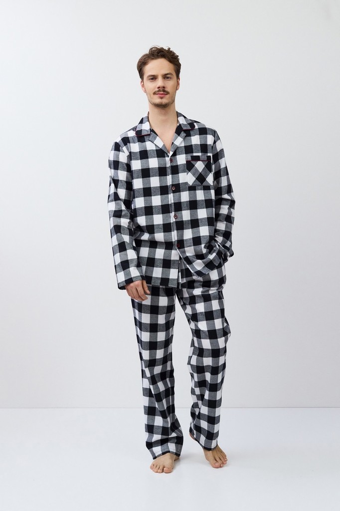 Пижама мужская со штанами BENNY для вашего ночного комфорта. Пижама выполнена из хлопковой фланели с добавлением люрексовой нити. Рубашка на пуговицах, с длинными рукавами, отложным воротником и нагру... Показать описаниедным карманом. Окантовка дополняет и украшает комплект. Штаны длинные, прямого кроя, с эластичным поясом с завязкой и боковыми карманами. Расслабьтесь с максимальным комфортом и стилем в пижаме BENNY.