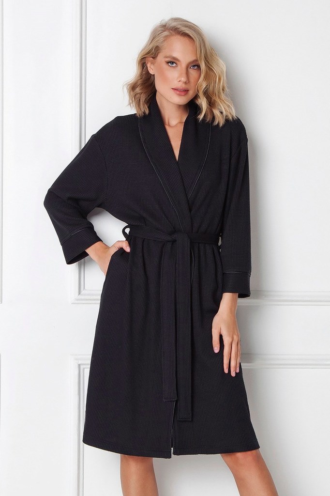 Элегантный халат ANNALISE с карманами по бокам, атласными шнурами внутри и поясом. Манжеты и воротник украшены атласной окантовкой. Этот красивый халат сделан из вязаной ткани и предназначен для того,... Показать описание чтобы побаловать себя.