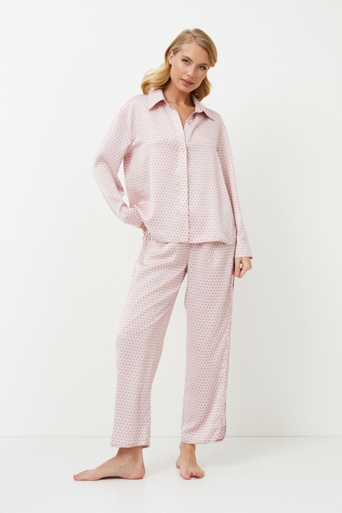 Пижама женская со штанами ALIX для вашего ночного комфорта. Пижама выполнена из вискозы. Рубашка на пуговицах, с длинными рукавами, отложным воротником и нагрудным карманом. Окантовка дополняет и укра... Показать описаниешает комплект. Штаны свободные, с эластичным поясом с завязкой. Расслабьтесь с максимальным комфортом и стилем в пижаме ALIX.