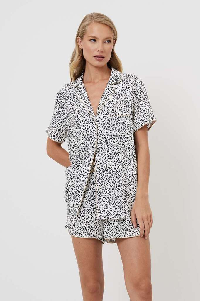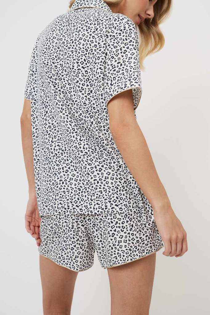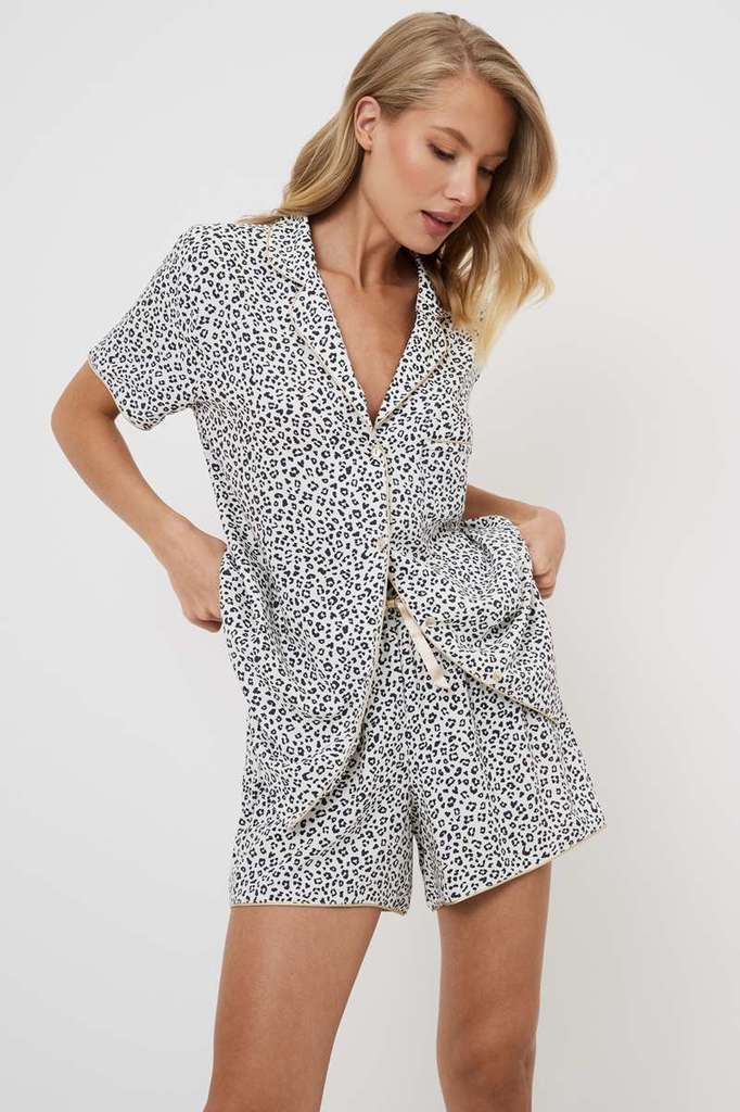 Представляем вашему вниманию пижаму с шортами Beatrich — воплощение безумной мечты. Изготовлена из лёгкой вискозы с шикарным серым леопардовым принтом. Рубашка на пуговицах с короткими рукавами, окант... Показать описаниеовкой на манжетах и V-образным вырезом. Шорты с поясом-завязкой, украшены коричневой лентой и окантовкой по бокам. Этот комплект излучает необузданное очарование. Дайте волю своему воображению в наших коротких пижамных шортах Beatrich, которые идеально подходят для тех, кто не боится мечтать.