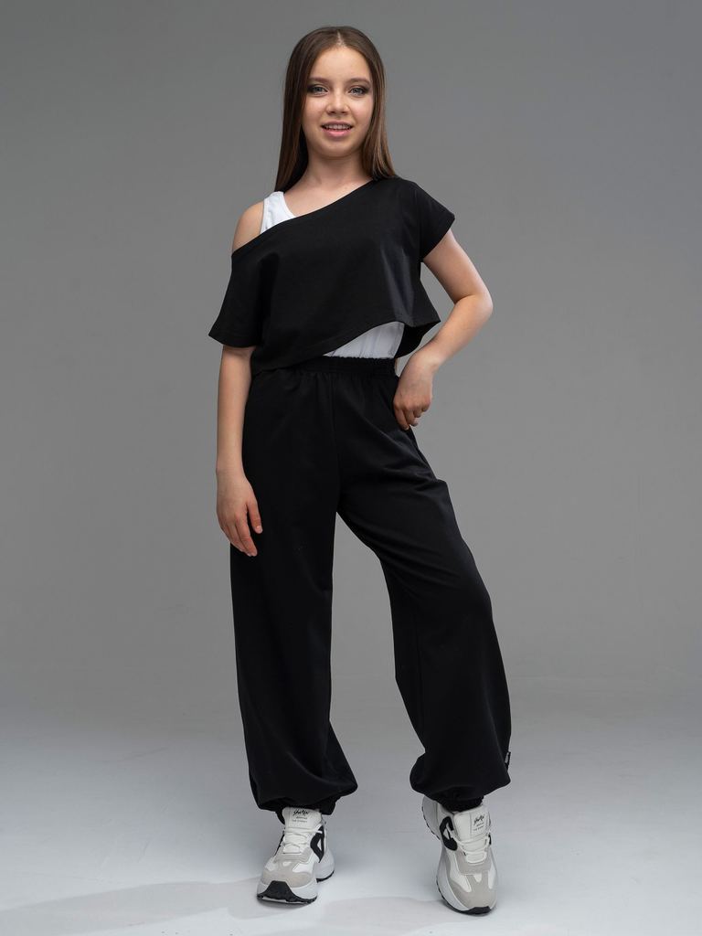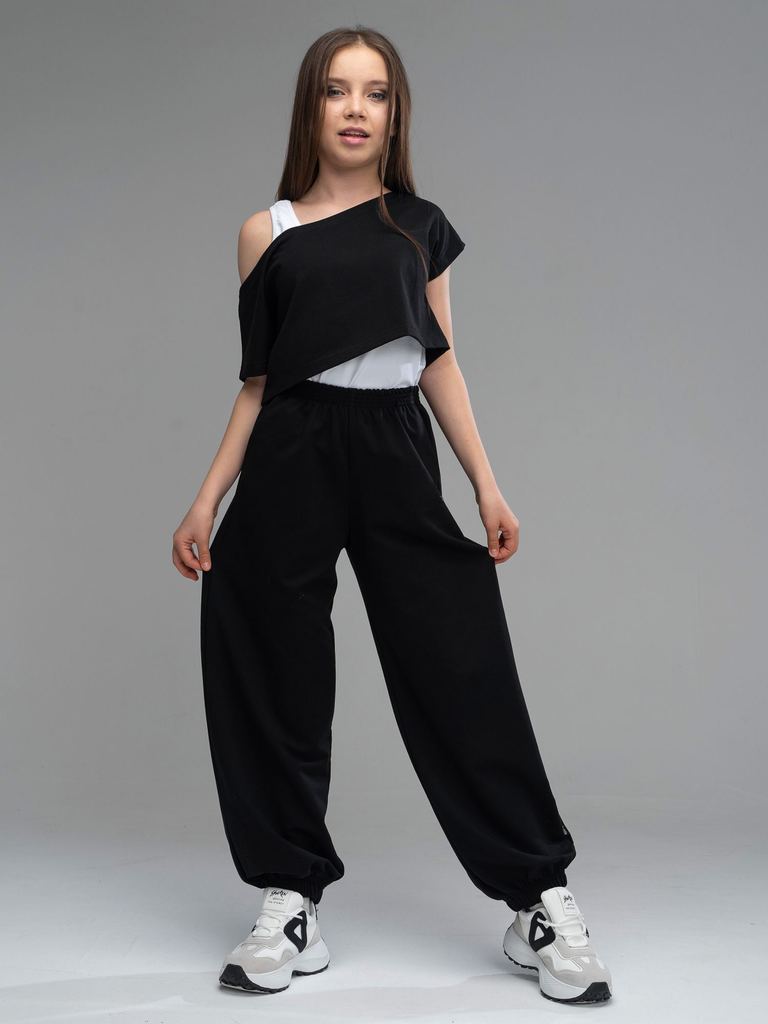 Описание и параметры Широкие брюки из футера(3х нитка) черного цвета свободного силуэта с карманами в боковых швах и резинкой по низу. Трико спортивное сшиты из трикотажа высшего качества Пенье, содер... Показать описаниежащего 92% хлопка, 8% полиэстер. Спортивки тренировочные детские из футера(3х нитка) черного цвета устойчивы к образованию катышков. Брюки без утепления и без начеса подходят на летний, весенний и осенний периоды. Треники комфортны в школу на физкультуру как спортивная форма, для занятия спортом, как одежда для подростка, для дома как домашняя одежда. Стильные широкие штаны подходят для танцев, хип хоп и других направлений. Подростковые брюки современного свободного кроя с удобной посадкой. Трикотажные спортивные штаны станут отличным подарком для ребенка, подростка по любому поводу. Артикул 0882F3ch Цвет Черный Материал Футер(3х нитка) Состав 92%хлопок, 8%полиэст. Размеры * 134/140 Длина изделия: 86 Длина по шаговому шву: 64 Обхват по бёдрам: 79 * 146 Длина изделия: 91 Длина по шаговому шву: 67 Обхват по бёдрам: 84 * 152 Длина изделия: 95 Длина по шаговому шву: 70 Обхват по бёдрам: 88