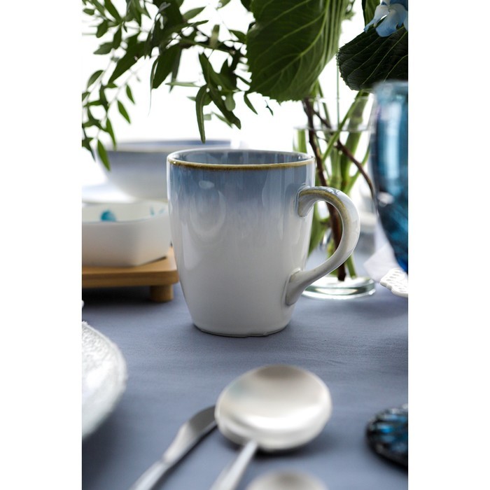 Нежная серия посуды «Пэвэти» от торговой марки Magistro влюбляет в себя с первого взгляда. Изделия выполнены в небесных оттенках с бежевой окантовкой, что придаёт им незабываемый и утончённый вид. Вся... Показать описание посуда изготовлена из качественного фарфора и отличается высокой прочностью, устойчива к появлению царапин и резким перепадам температур. Посуда «Пэвэти» подходит как для праздничной, так и для ежедневной сервировки. Можно использовать в СВЧ и посудомоечной машине. Дополнительно Кружка изготовлена из качественного сырья. Прочный фарфор и тщательный подход к покраске изделий обеспечивают следующие преимущества: * поверхность устойчива к сколам; * цвет сохраняет насыщенность при долговременном использовании; * легко моется в посудомоечной машине на деликатном режиме; * можно ставить в холодильник и СВЧ-печь. Традиционный стиль и приятный цвет делают предмет подходящим для домашнего и профессионального использования. Рекомендуется избегать ударов и падений.