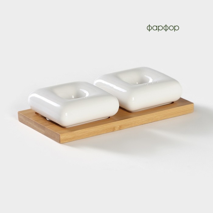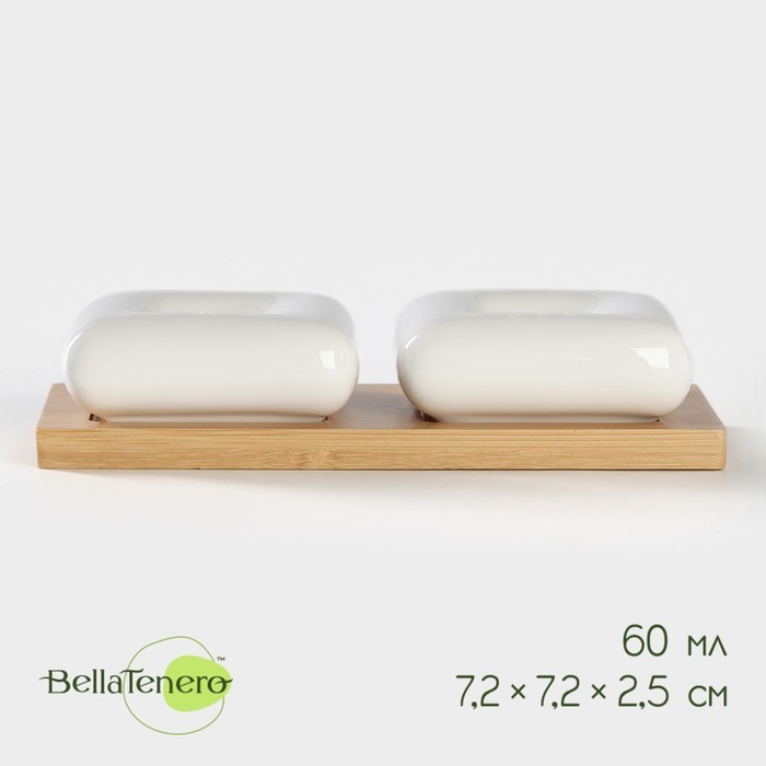 Набор для специй BellaTenero изготовлен из качественного фарфора. Кухонные изделия из фарфора отличаются прочностью и надёжностью, устойчивы к появлению царапин и резким перепадам температур. Благодар... Показать описаниея оригинальному дизайну набор отлично впишется в интерьер вашей кухни и станет настоящей изюминкой при сервировке. Набор дополняет устойчивая деревянная подставка. Комплектация * Солонка – 60 мл * Перечница – 60 мл * Подставка Дополнительно Можно использовать в посудомоечной машине без бамбуковых частей набора.