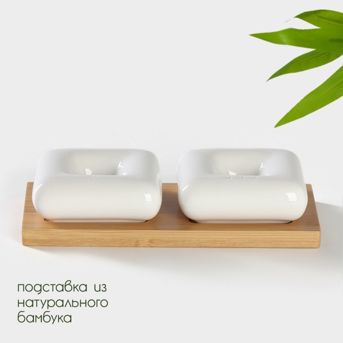 Набор для специй на бамбуковой подставке BellaTenero, 3 предмета: солонка 60 мл, перечница 60 мл, подставка, фарфор, белыйВопросы по товару