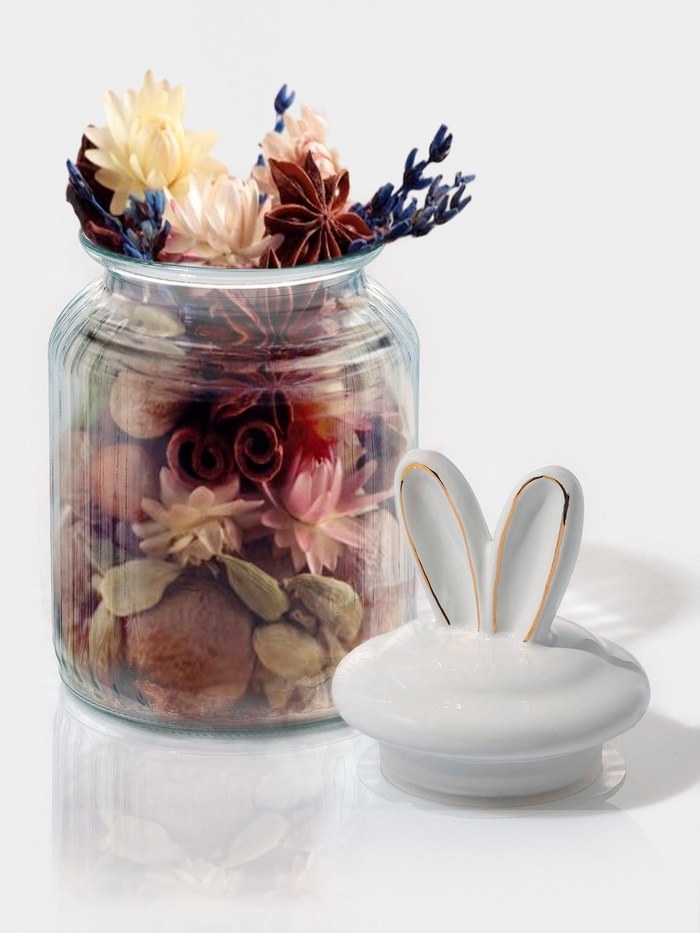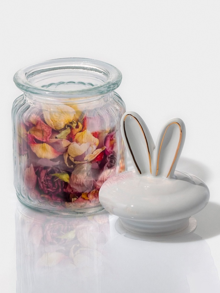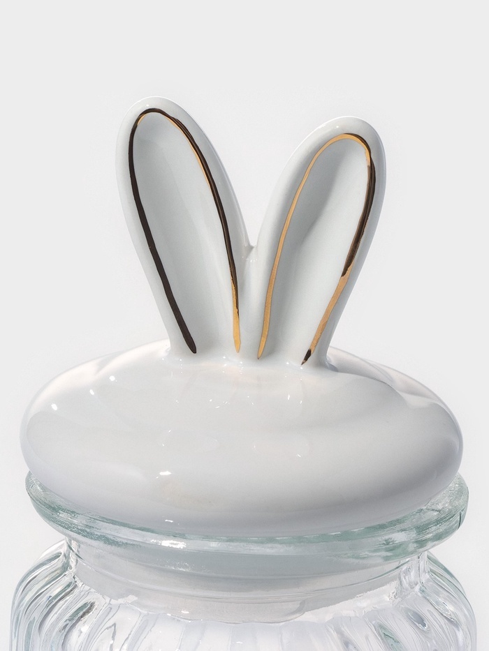 Банка для сыпучих Доляна «Зайка в золотом», 230 мл, с керамической крышкой, стекло, прозрачнаяВопросы по товару