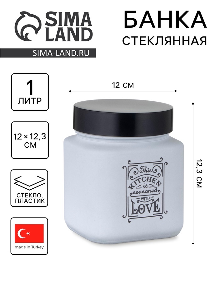 Банка для сыпучих «Любовь на кухне», 1 л, стекло, белаяВопросы по товару