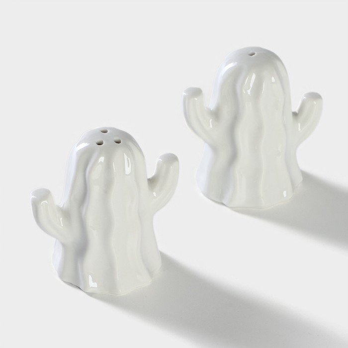 Набор для специй BellaTenero «Кактусы», солонка 75 мл, перечница 75 мл, на бамбуковой подставке, фарфор, белыйВопросы по товару