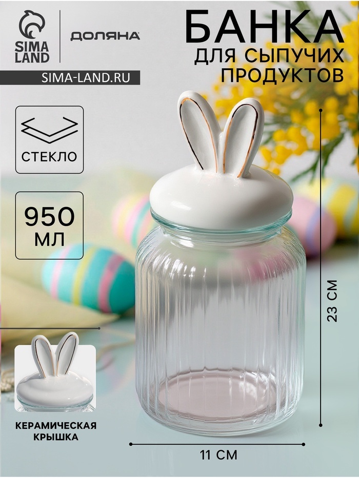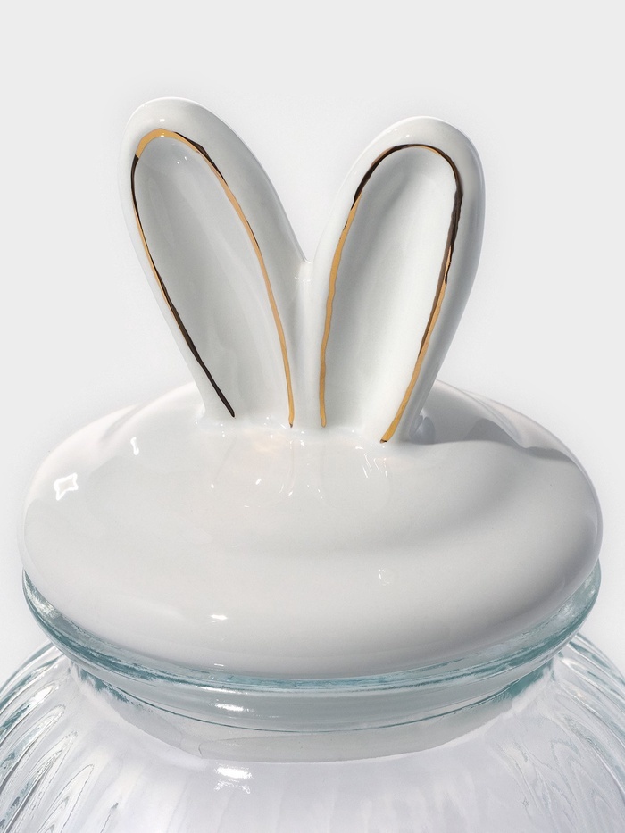 Банка для сыпучих Доляна «Зайка в золотом», 950 мл, с керамической крышкой, стекло, прозрачнаяВопросы по товару