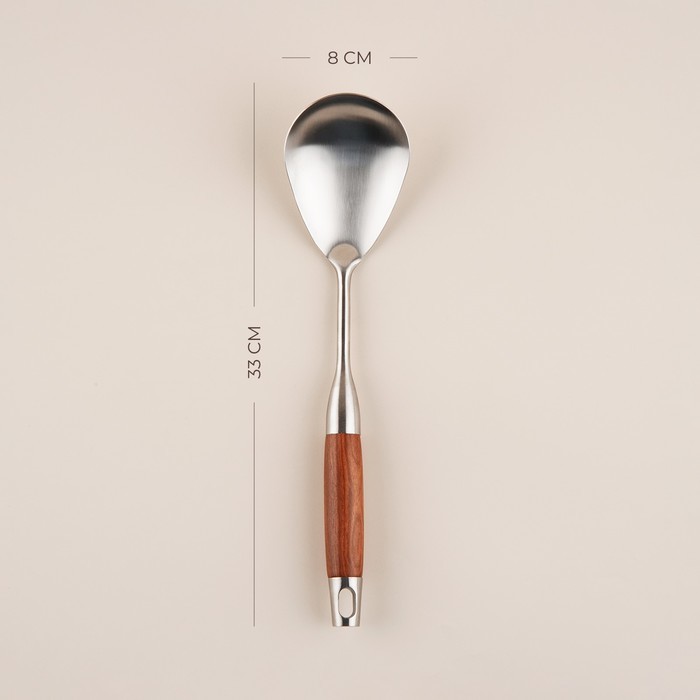 Гарнирная ложка SL Home «Рустик» — идеальный выбор для вашей кухни! Благодаря стильному дизайну в цвете серебро эта ложка станет прекрасным дополнением к вашему кухонному инвентарю. Она прочная, долго... Показать описаниевечная и легко моется. Преимущества товара: * Высокое качество материалов: изделие изготовлено из нержавеющей стали, что обеспечивает его прочность и долговечность. * Удобная ручка: деревянная ручка обеспечивает комфортное использование и предотвращает скольжение в руке. * Стильный дизайн: ложка выполнена в цвете хром, что придаёт ей современный и элегантный вид. * Лёгкость ухода: изделие можно мыть вручную или в посудомоечной машине.