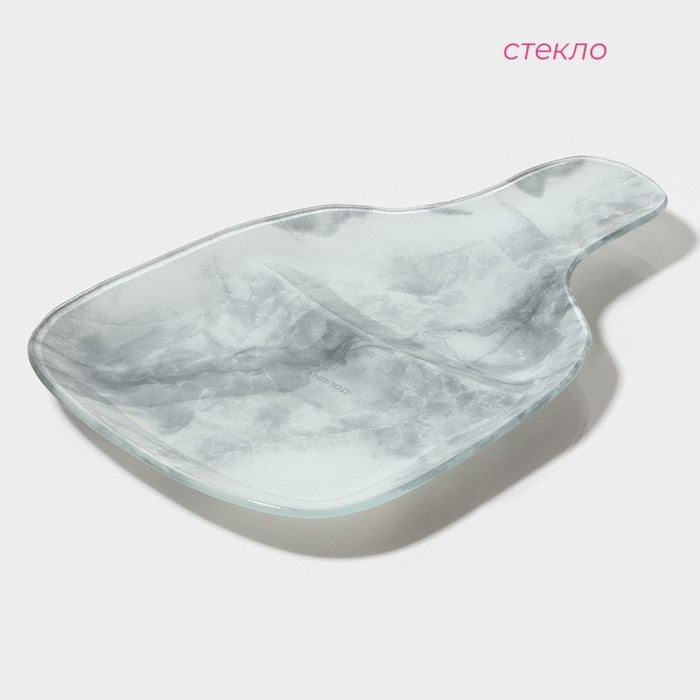 Менажница Доляна «Марбл белый», 2 секции, 27?18?2 см, стекло, сераяВопросы по товару