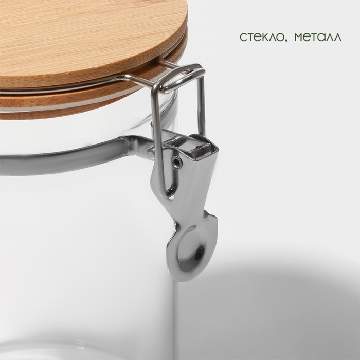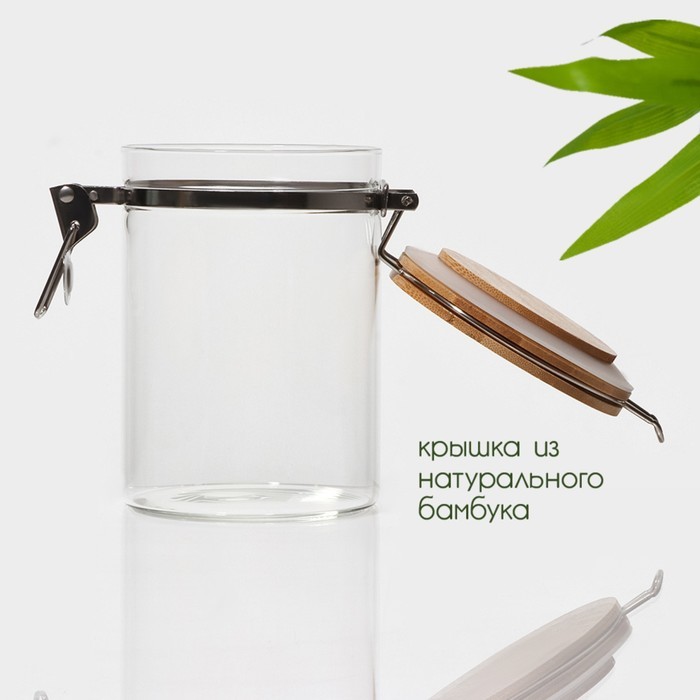 Банка для сыпучих продуктов «Эко» с бугельным замком. Баночка «Эко» с ложкой идеально подойдёт для хранения специй, соли, сахара и других сыпучих продуктов. Преимущества * Удобна в использовании. * По... Показать описаниедойдёт для любого интерьера: стеклянная баночка «Эко» имеет простой дизайн без рисунков. * Изготовлена из экологичных материалов: стекла, бамбука и пищевого силикона. Дополнительно Баночку можно мыть в ПММ без крышки
