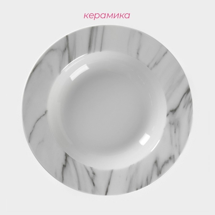 Тарелка глубокая Доляна «Мрамор», 300 мл, d=21 см, керамика, белая, сераяВопросы по товару